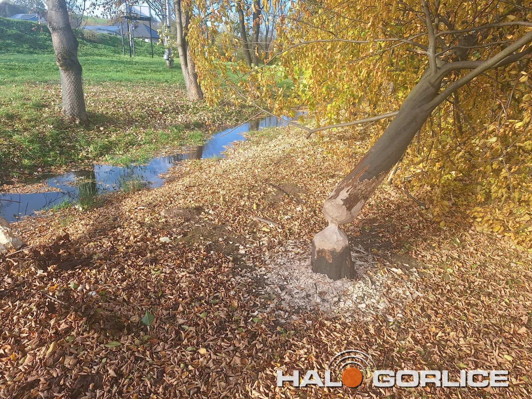 Już na pierwszy rzut oka widać, że natura znów wzięła sprawy w swoje ręce – a właściwie w swoje zęby. W kilku miejscach przy rowie melioracyjnym można zauważyć świeże ślady bobrowej działalności. Charakterystycznie podgryzione pnie i ścieżki prowadzące do wody to znak, że te pracowite zwierzęta znów są bardzo aktywne. Niektóre drzewa zostały powalone, inne – zaznaczone do dalszej „obróbki”.