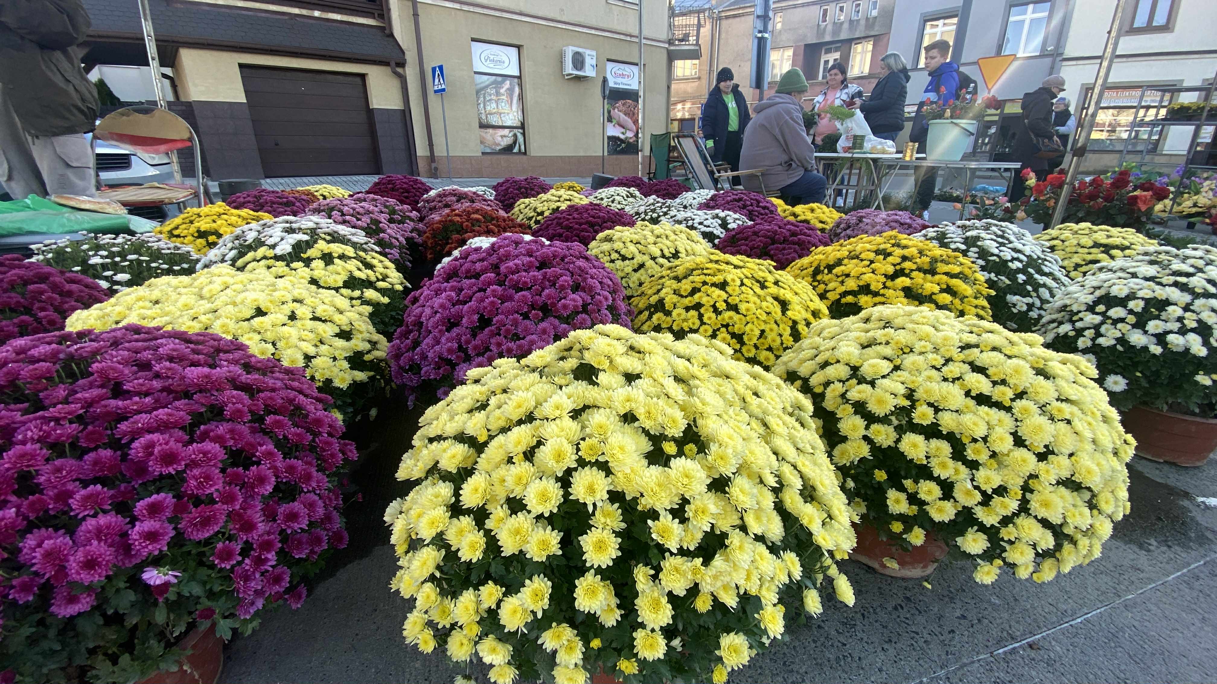 W tym roku królują klasyczne, jesienne barwy – od ciepłych odcieni żółci i pomarańczy po głęboki fiolet i biel. Klienci chętnie wybierają chryzantemy w pastelowych tonach, które tworzą eleganckie i stonowane kompozycje. Na stoiskach można zauważyć także większe zainteresowanie naturalnymi dodatkami – szyszkami, suszonymi liśćmi czy wrzosem.