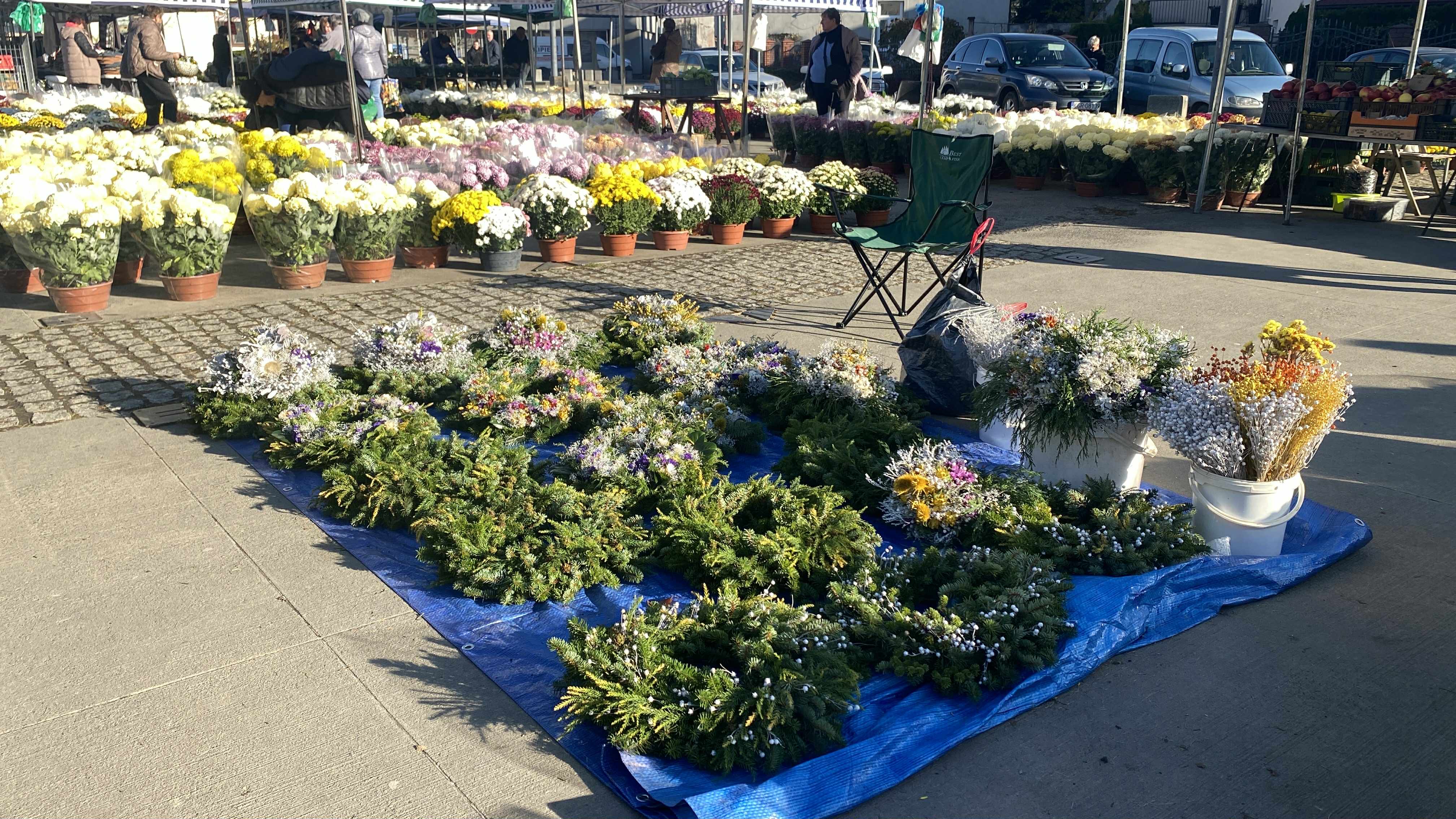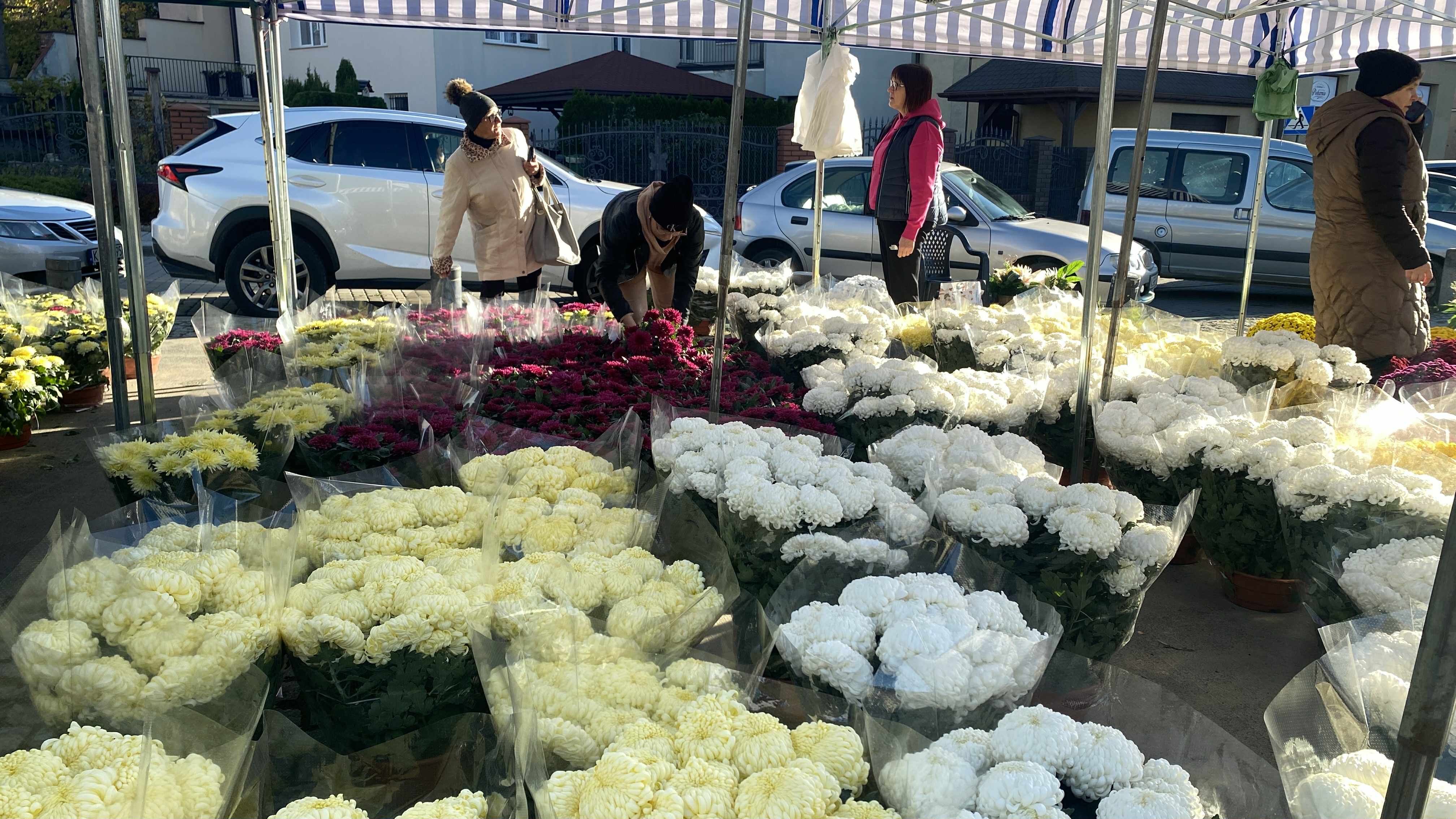 Największego tłumu spodziewamy się w piątek, w sobotę oferta będzie już mocno ograniczona. Ludzie kupują nie tylko kwiaty, ale i znicze, żeby zdążyć przygotować groby bliskich przed świętem – mówi jeden z handlarzy z Placu Dworzysko.