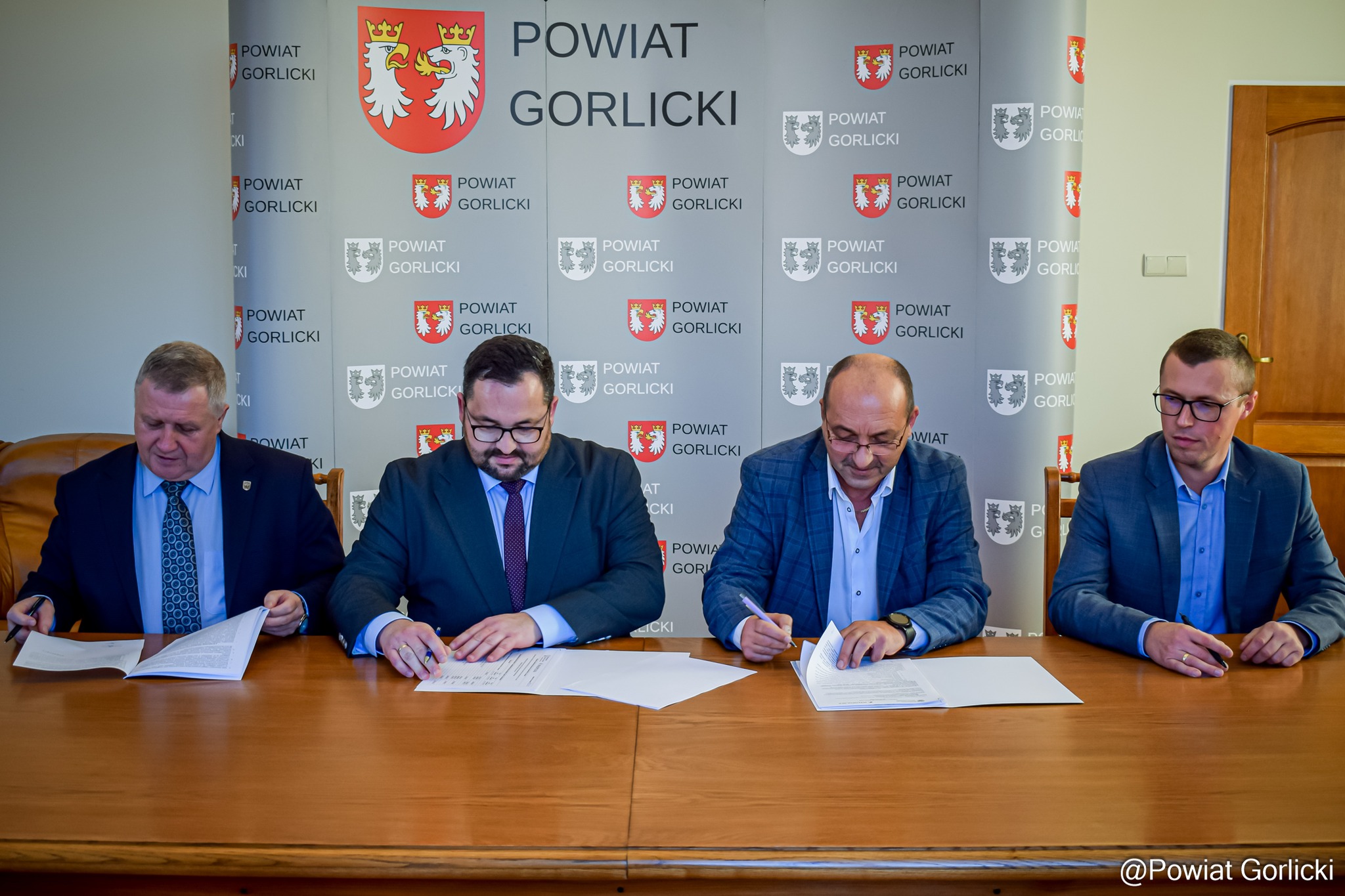 Prace oficjalnie ruszyły po podpisaniu umowy z wykonawcą 31 października 2025 r. Dokument sygnowali: w imieniu Powiatu Gorlickiego – Starosta Mirosław Waląg oraz Etatowy Członek Zarządu Marek Ludwin, przy kontrasygnacie Skarbnik Agnieszki Szkaradek. Ze strony wykonawcy podpis złożył Maciej Matyja. Tego samego dnia odbyło się formalne przekazanie terenu budowy.
