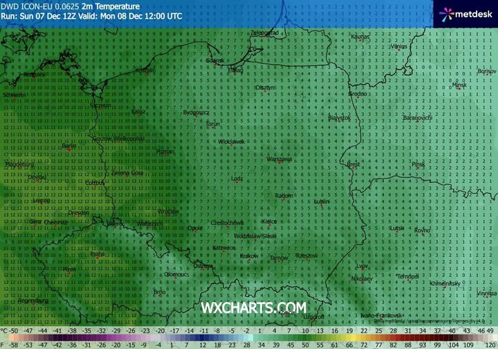 - spodziewany wzrost temperatury powietrza w poniedziałek o 13 CET.
