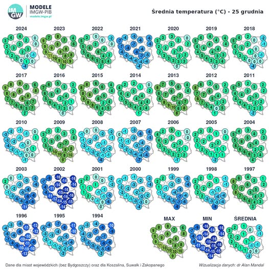 - średnia temperatura z 25 grudnia z ostatnich 30 lat w Polsce.
