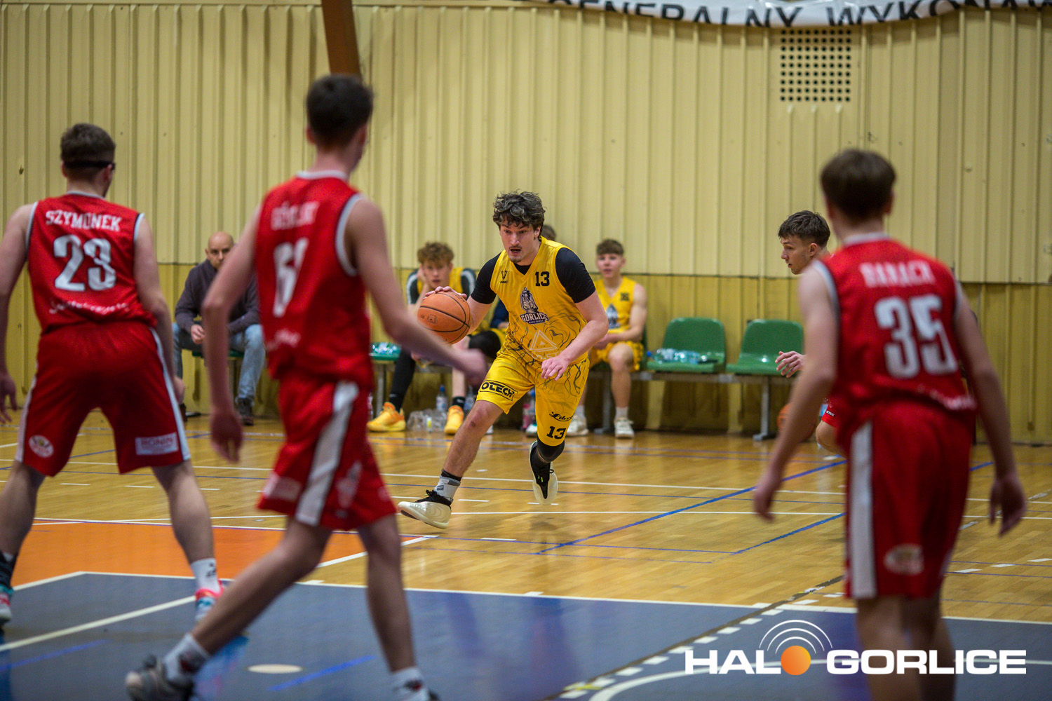 Początek meczu należał do gospodarzy. Juniorzy MKS Gorlice narzucili dobre tempo gry, grali mocno w obronie i byli skuteczni w ataku, co szybko przełożyło się na kilkunastopunktową przewagę. Dobra organizacja gry i konsekwencja w realizacji założeń trenerskich pozwoliły kontrolować przebieg spotkania przez większą część pierwszej połowy. Ich przewaga byłaby jeszcze większa, gdyby nie zmarnowana masa rzutów wolnych.