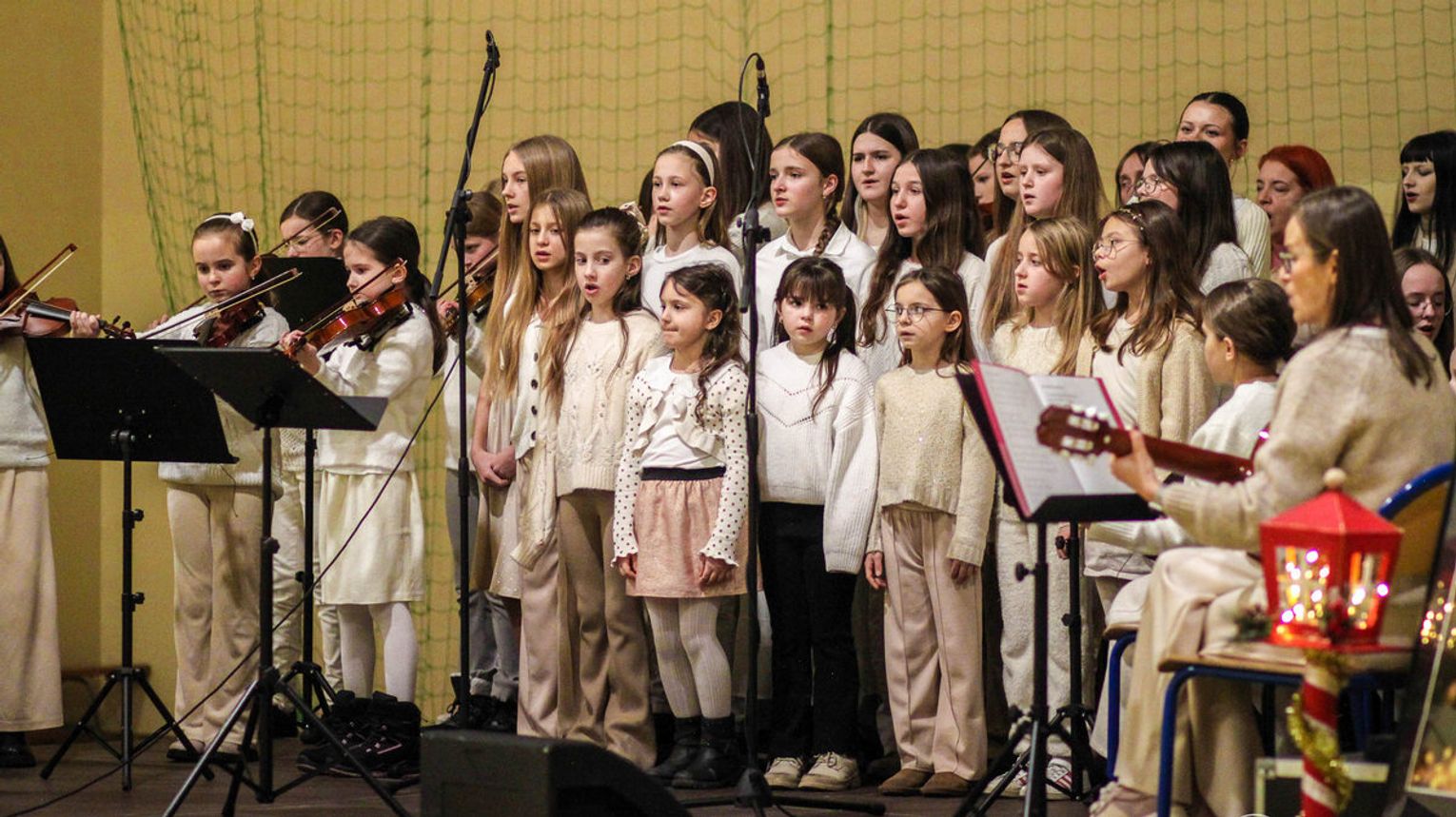 zdjęcie przedstawia dzieci śpiewające na scenie