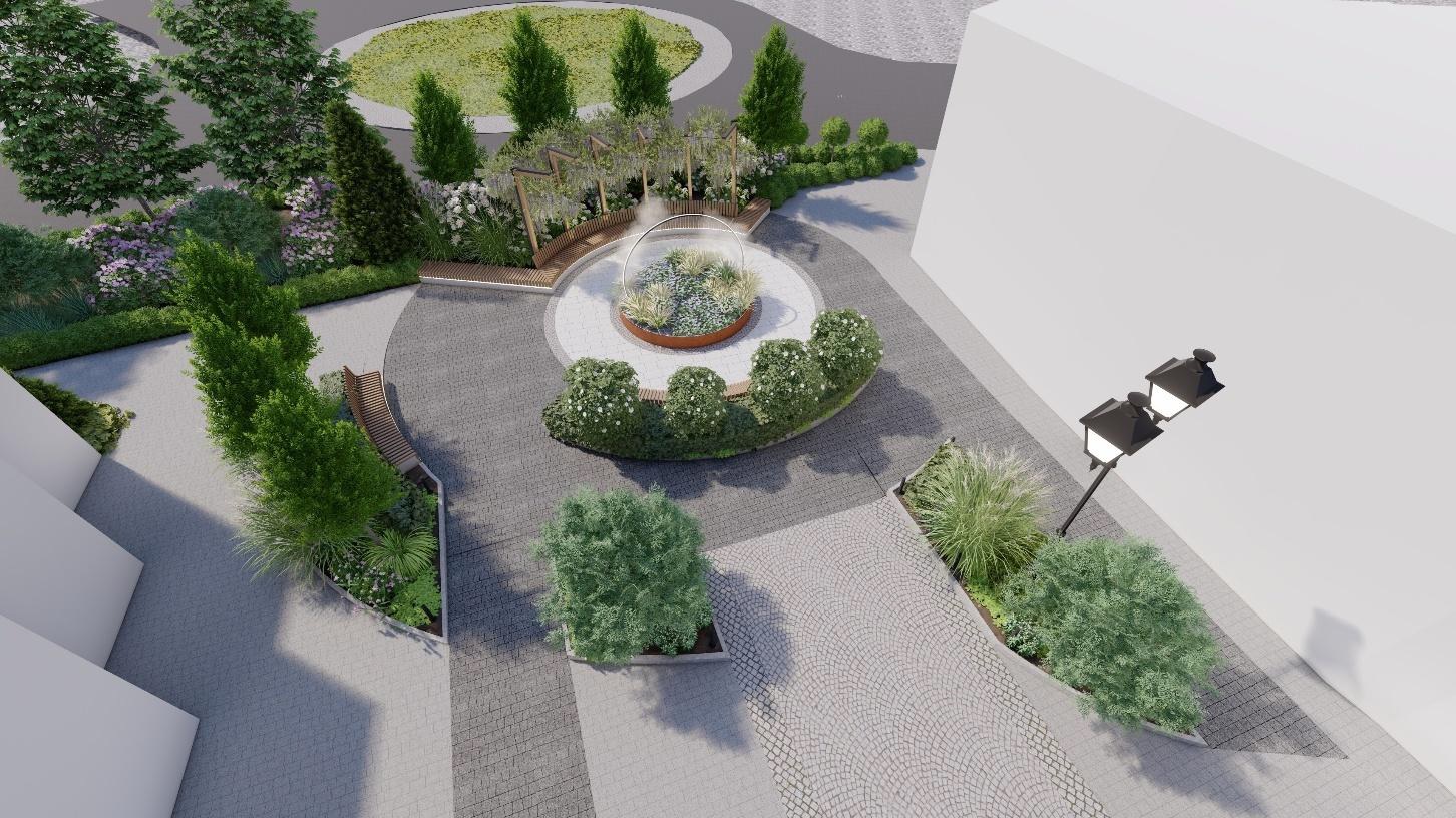 Na Rynku dominuje wrażenie większego zacienienia i podziału przestrzeni na strefy. Z jednej strony takie rozczłonkowanie może sprzyjać codziennemu użytkowaniu, bo łatwiej znaleźć miejsce na chwilę i schować się przed słońcem. Z drugiej strony część mieszkańców może pytać, czy przy takiej liczbie nasadzeń i elementów stałych nie ucierpi funkcja dużych wydarzeń, gdy potrzebna jest szeroka, otwarta przestrzeń. Widać też mocny nacisk na zieleń urządzoną, rabaty, krzewy, wyraźnie poprowadzone linie nasadzeń, a także pergole i pawilony.