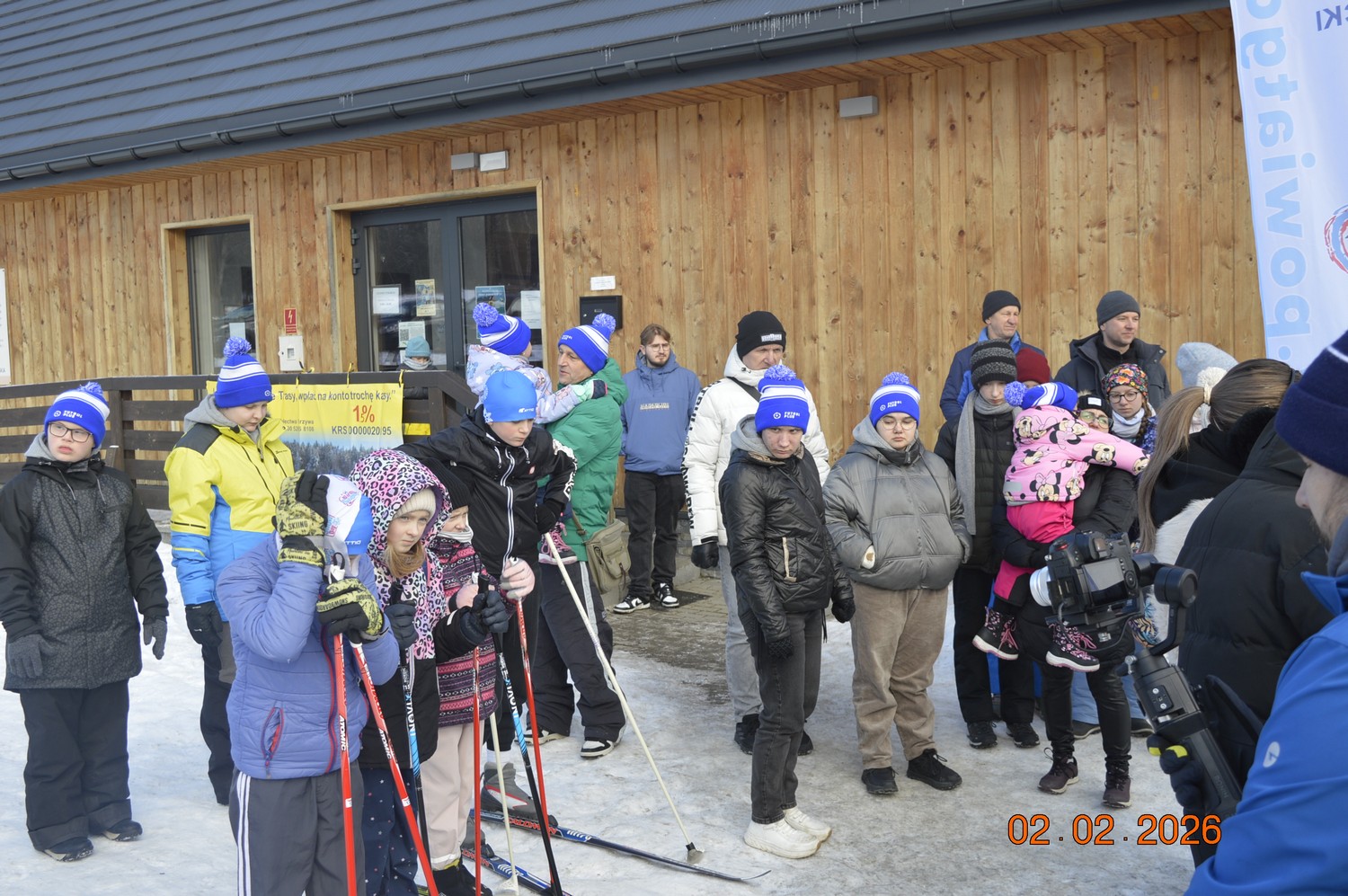 Na starcie pojawiła się grupa dzieci m.in. podopiecznych Fundacji Mały Krok - Wielka Siła, które przyszły po coś więcej, niż tylko naukę. Było widać ciekawość i chęć spróbowania swoich sił, nawet jeśli mróz szczypał w policzki. Krzywa szybko zamieniła się w małe sportowe miasteczko, ktoś dopinał buty, ktoś szukał rękawiczek, ktoś dopytywał, jak ustawić kijki. A potem wszystko zaczęło się układać w jeden, wspólny plan – rozgrzać ciało, rozruszać nogi i ruszyć w trasę.