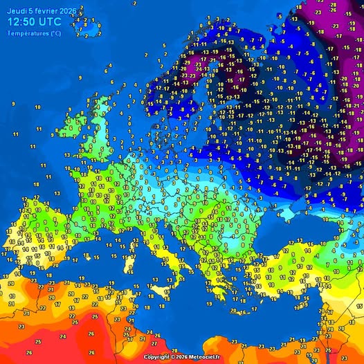 - temperatura powietrza zmierzona w Europie w czwartek o 13.50 CET