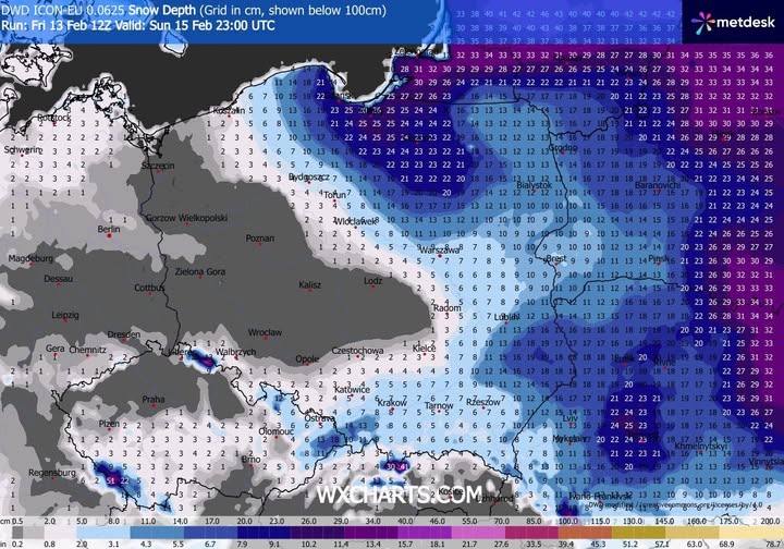 - spodziewana wysokość pokrywy śnieżnej do końca weekendu.