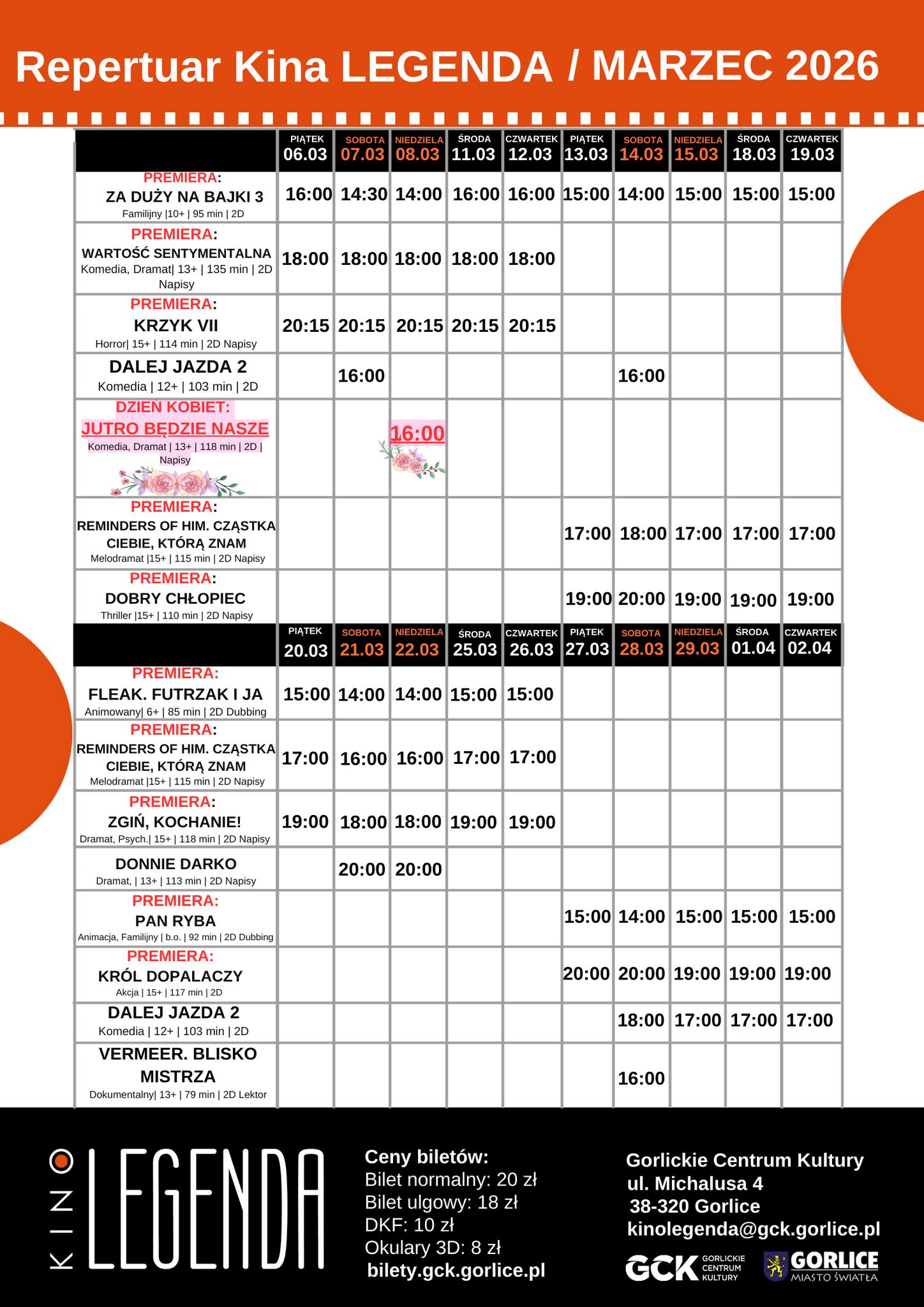 Szczegóły dotyczące repertuaru oraz innych nowości dostępne będą już wkrótce na stronie bilety.gck.gorlice.pl.