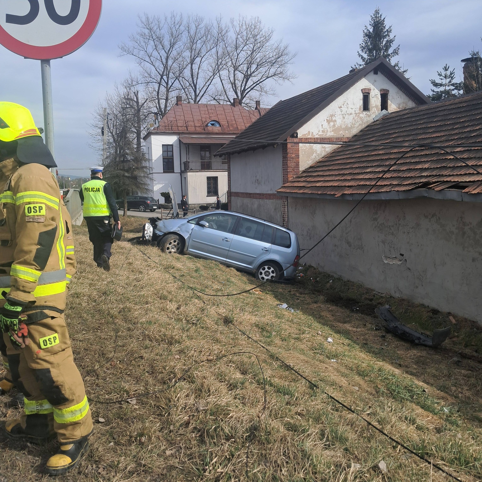 Jak ustalili policjanci, kierujący samochodem marki Volkswagen na prostym odcinku drogi stracił panowanie nad pojazdem. Auto zjechało z jezdni i uderzyło w słup telekomunikacyjny oraz budynek gospodarczy.
