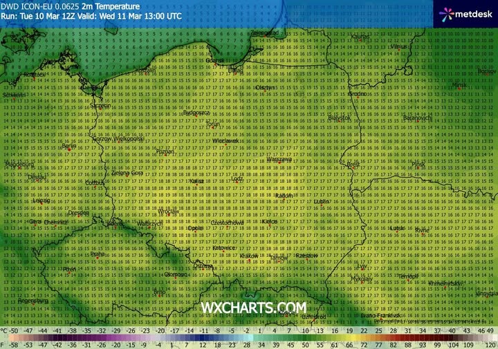 - spodziewany wzrost temperatury powietrza we środę o 14 CET.