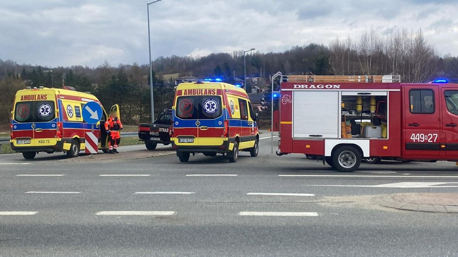 Jak wynika ze wstępnych ustaleń, w zdarzeniu uczestniczyły trzy samochody, dwa osobowe i jeden dostawczy. Na ten moment nie ma jeszcze oficjalnych informacji o stanie zdrowia uczestników zdarzenia. Służby prowadzą działania ratunkowe i zabezpieczają miejsce kolizji.