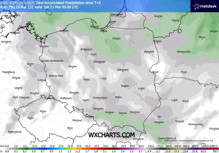 - spodziewana łączna suma opadu do soboty do godziny 1 CET.