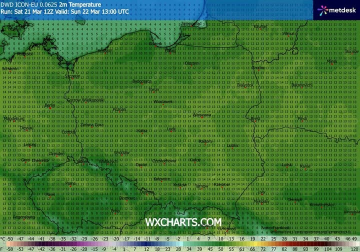 - spodziewany wzrost temperatury powietrza w niedzielę o 14 CET.
