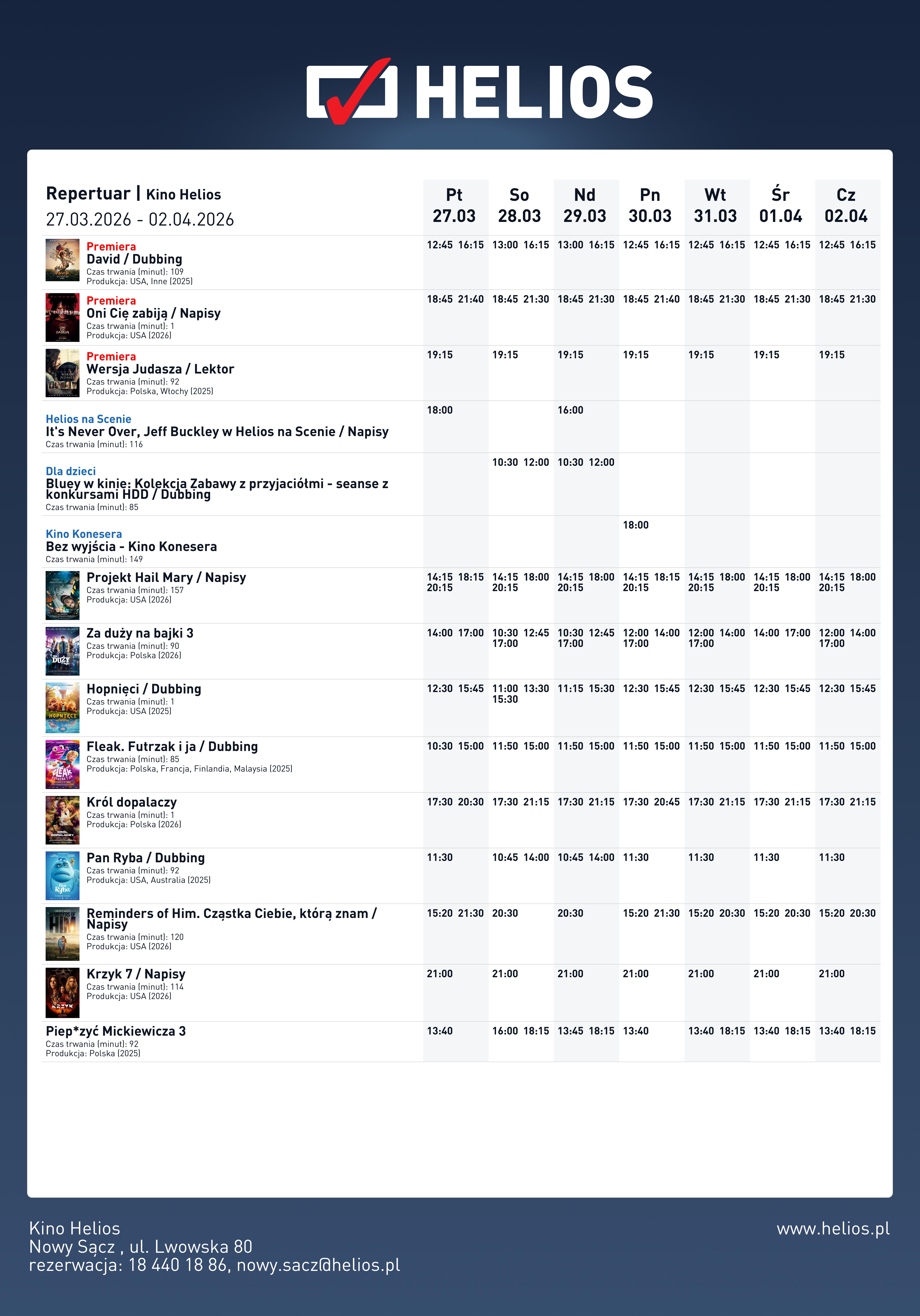 Repertuar prasowy Kino Helios Nowy Sącz