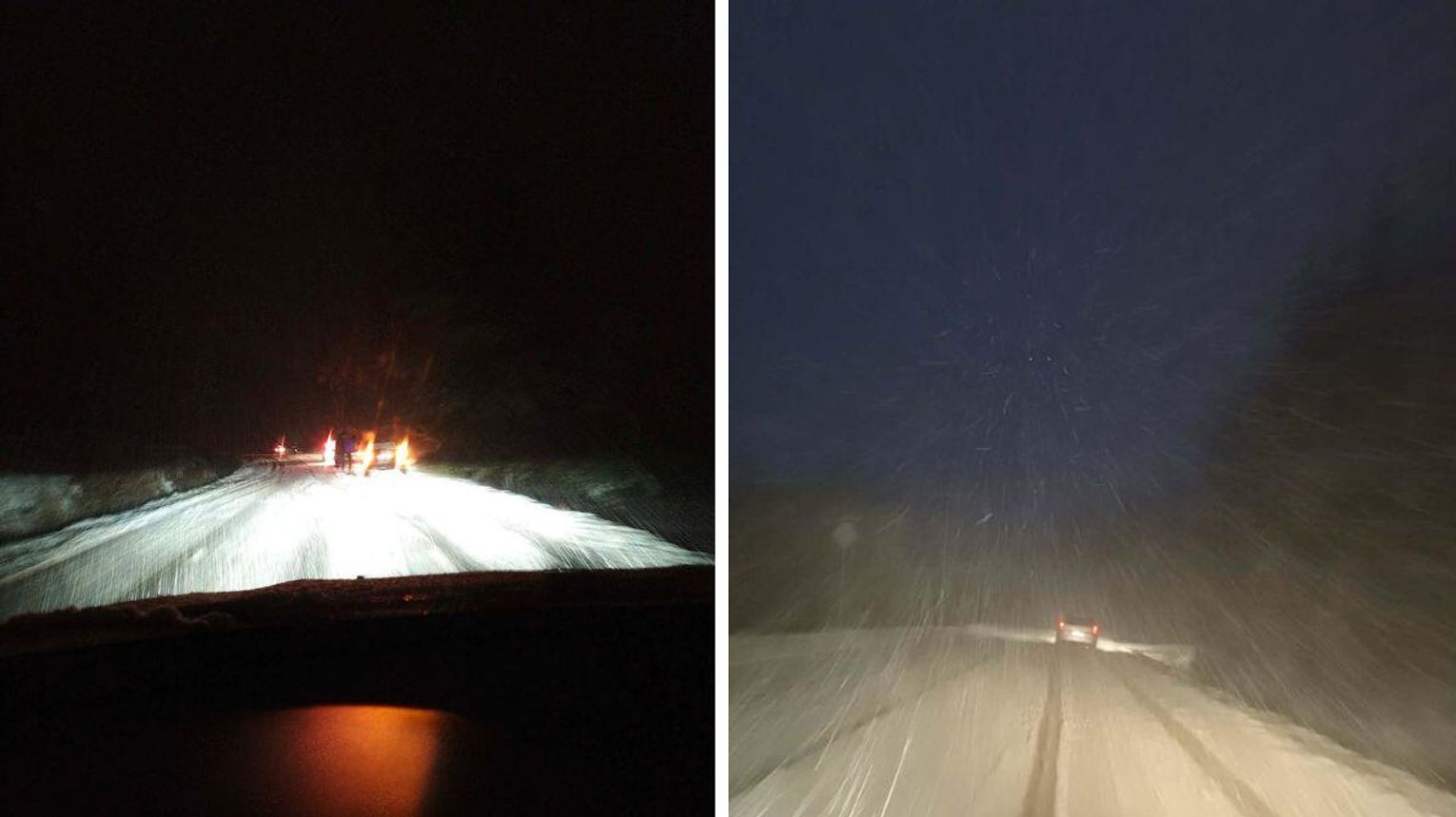 Czytelnicy przesyłają nam zdjęcia z drogi prowadzącej z Ropy w kierunku Uścia Gorlickiego. Widać na nich gęsto padający śnieg, który osadza się na jezdni i tworzy warstwę zalegającą na powierzchni drogi.
