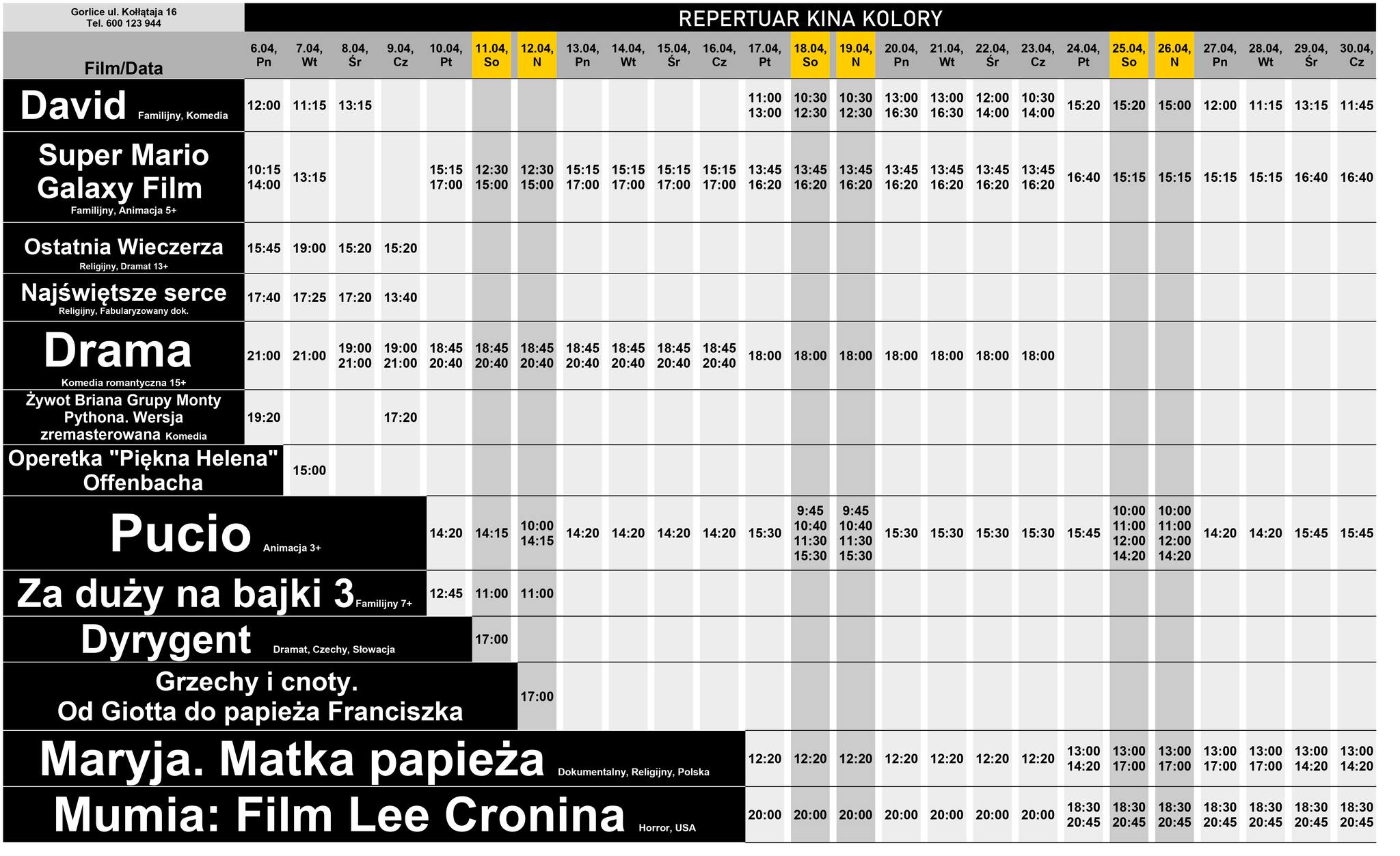 ![Kino Kolory | Repertuar na bieżący weekend [10-12 kwietnia 2026] Zdjęcie przedstawia plakaty filmów wyświetlanych w Kinie Kolory w Gorlicach](https://static2.halogorlice.info/data/articles/xl-kino-kolory-repertuar-na-biezacy-weekend-10-12-kwietnia-2026-1775769697.jpg)