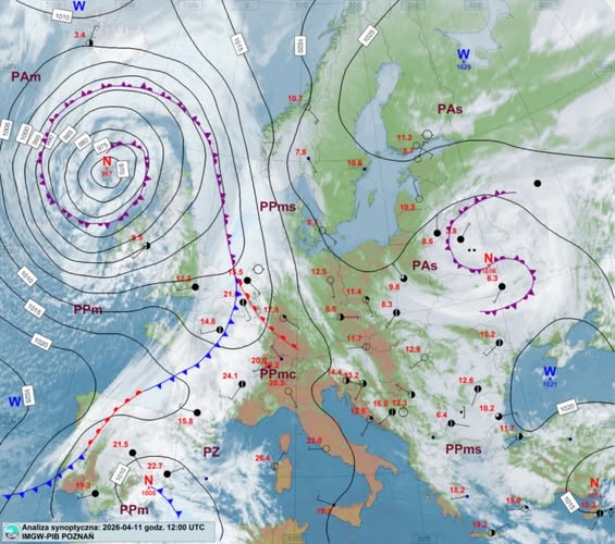 - mapa synoptyczna z 11 kwietnia z 14 CEST.