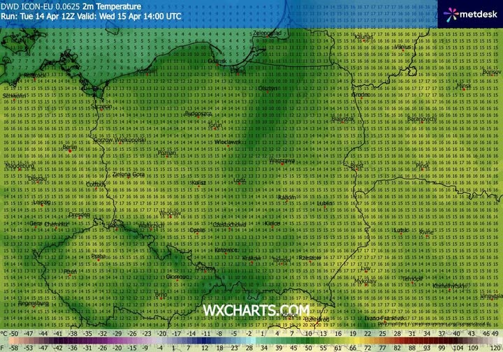 - spodziewany wzrost temperatury powietrza we środę o 16 CEST.