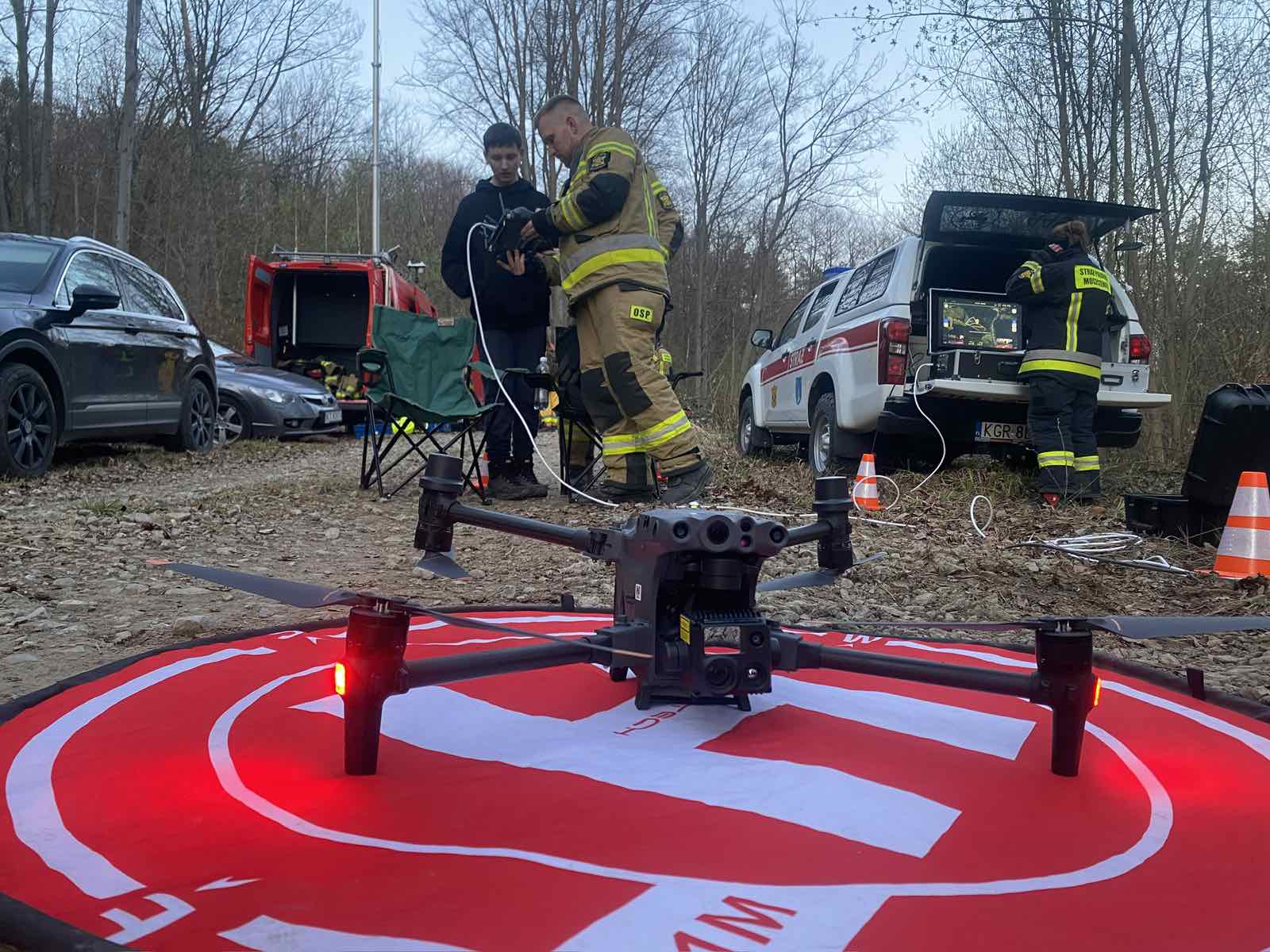 W działaniach wykorzystano również system DJI FlightHub 2, wspierający planowanie operacji z użyciem bezzałogowych statków powietrznych. Narzędzie to umożliwia koordynację lotów dronów oraz stały podgląd sytuacji w terenie, co ma istotne znaczenie podczas działań prowadzonych na rozległych obszarach.