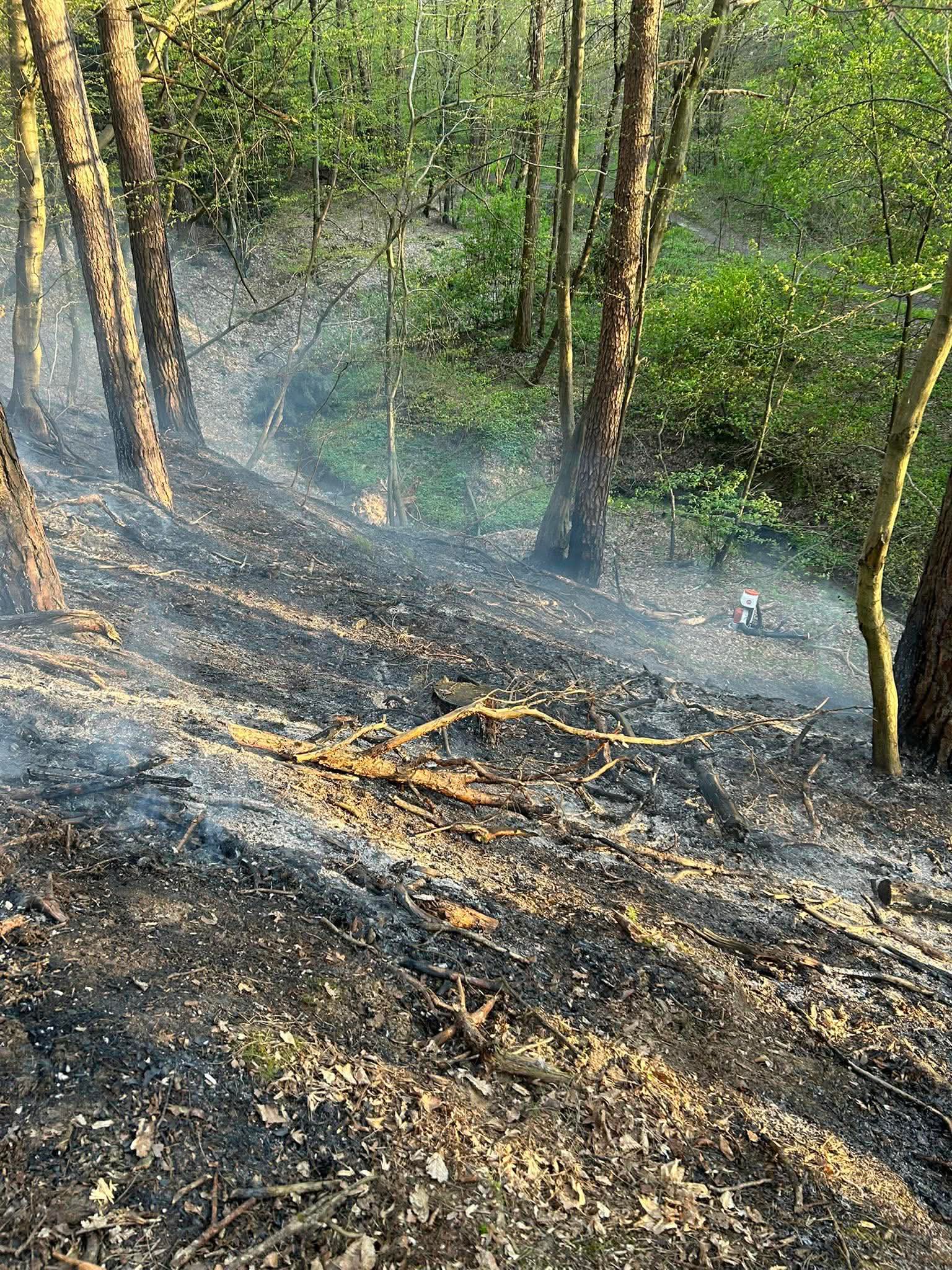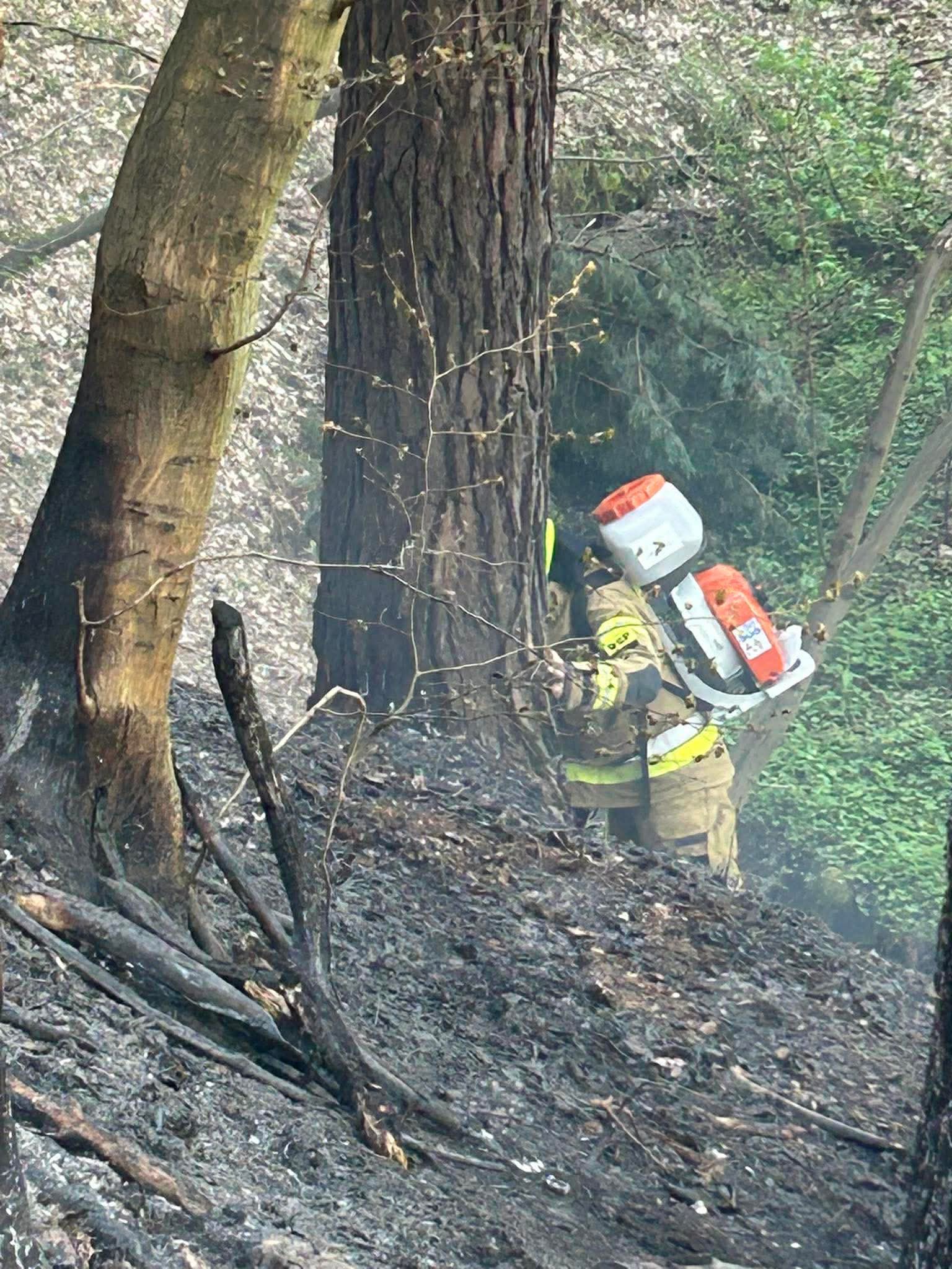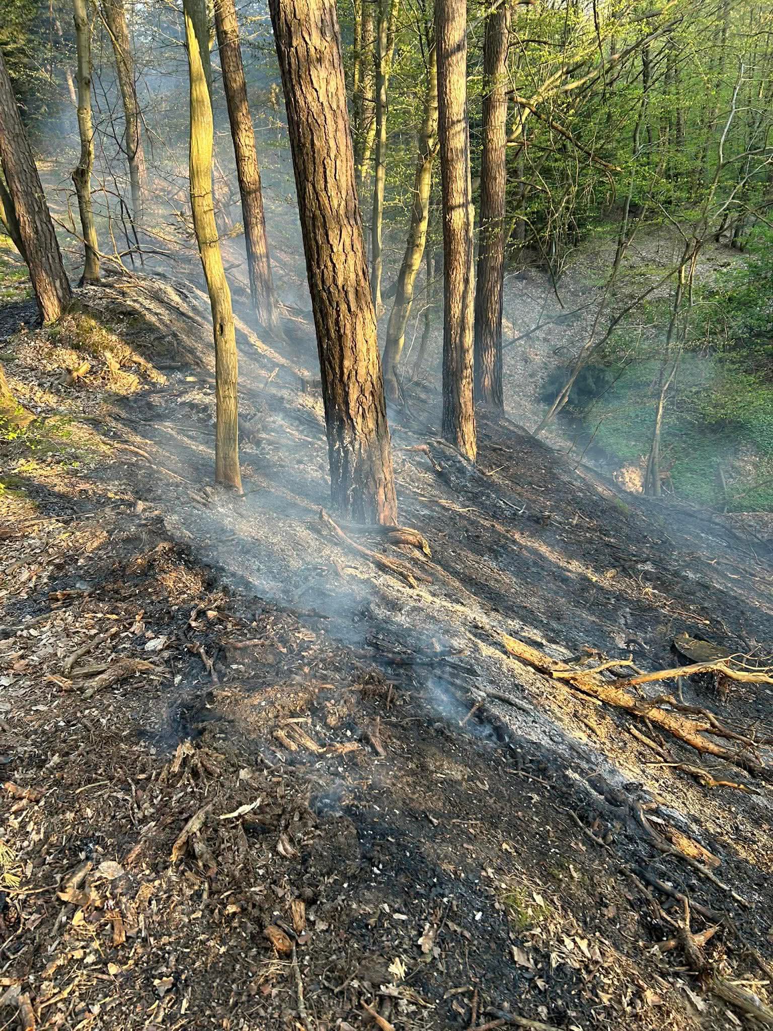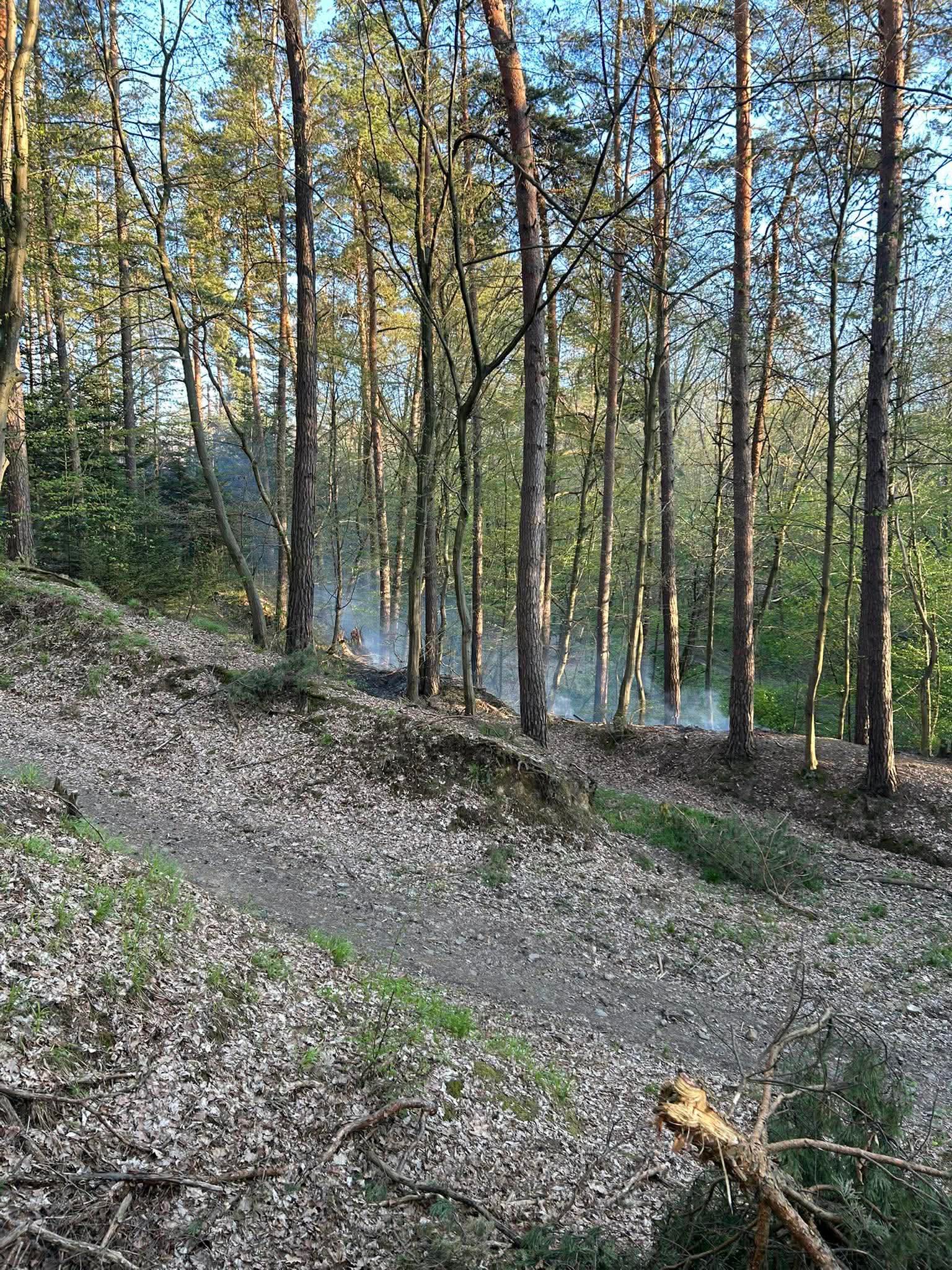 Akcja gaśnicza prowadzona była w trudnym terenie, bez możliwości bezpośredniego dojazdu do miejsca pożaru. W związku z tym strażacy musieli dotrzeć pieszo, wykorzystując sprzęt podręczny. Do gaszenia ściółki użyto m.in. natryskiwaczy, co pozwoliło skutecznie ograniczyć rozprzestrzenianie się ognia.