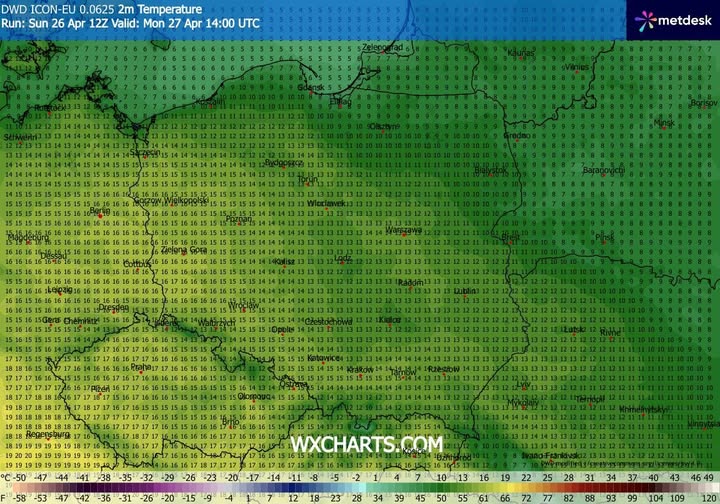 - spodziewany wzrost temperatury powietrza w poniedziałek o 16 CEST.
