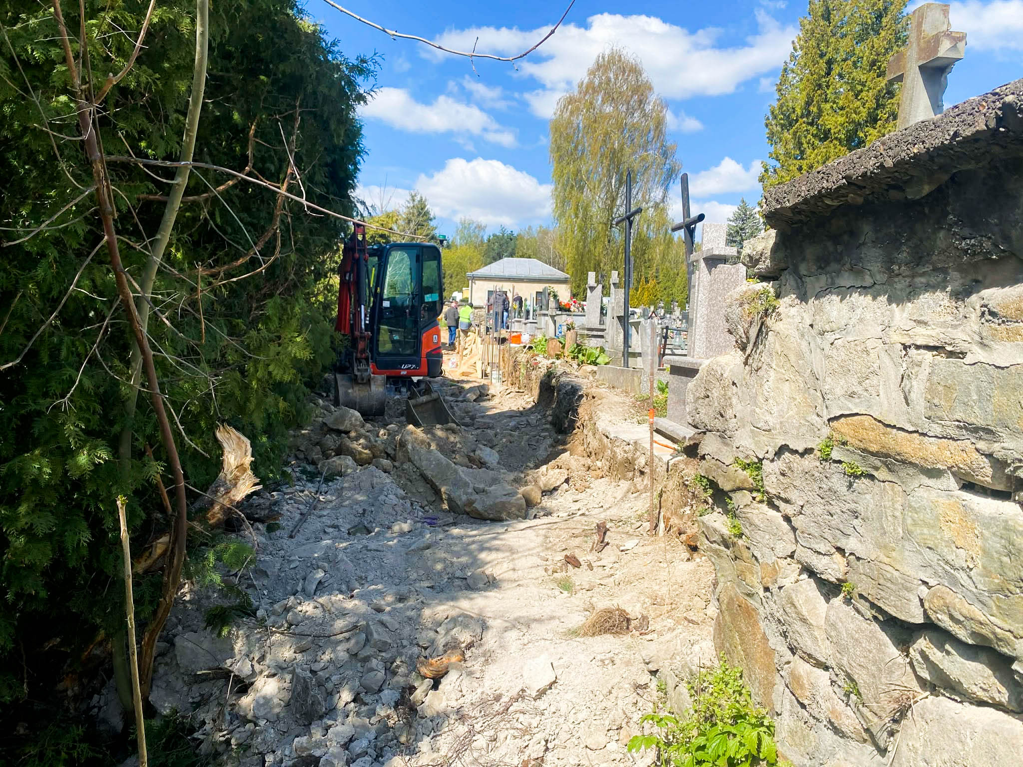 Prace przy zabytkowym murze cmentarza przy ul. Krakowskiej wyraźnie nabrały tempa. To inwestycja, na którą mieszkańcy czekali od lat, przede wszystkim ze względu na zły stan techniczny ogrodzenia oraz historyczne znaczenie tego miejsca.