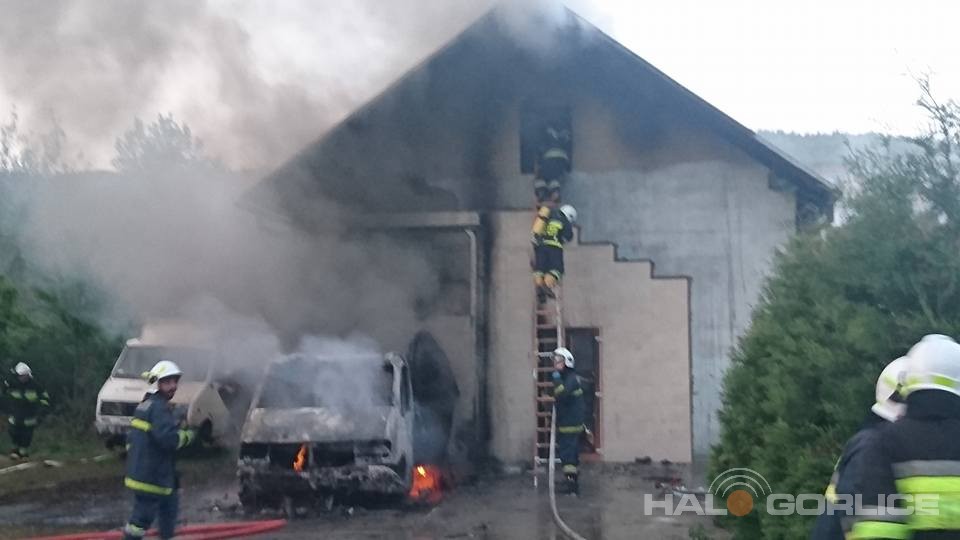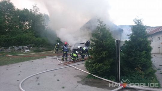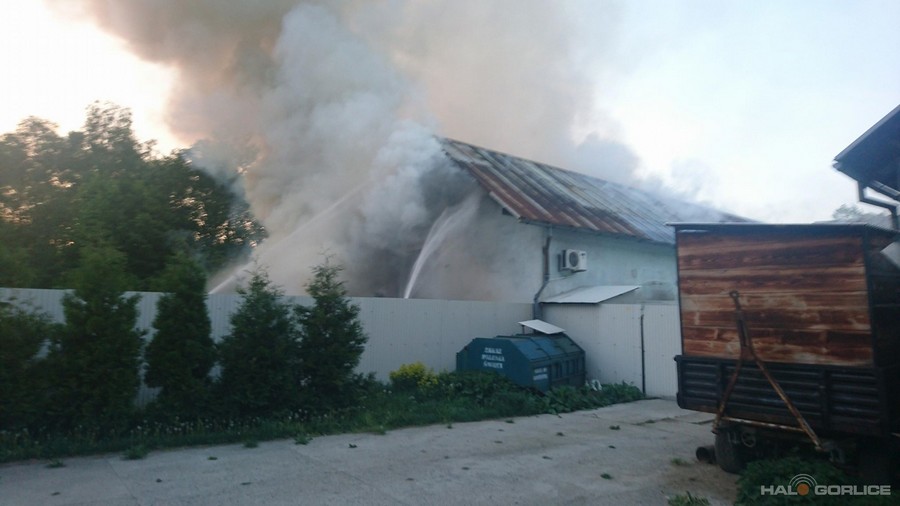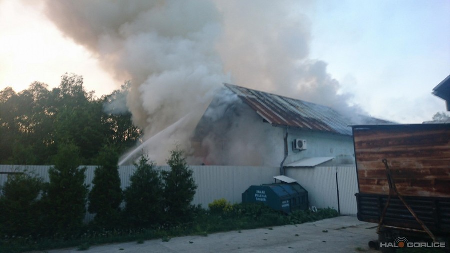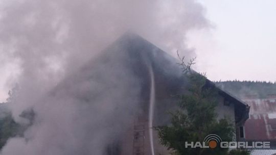Ropica Górna. Pożar zabudowań. Na miejscu kilka zastępów straży pożarnej.