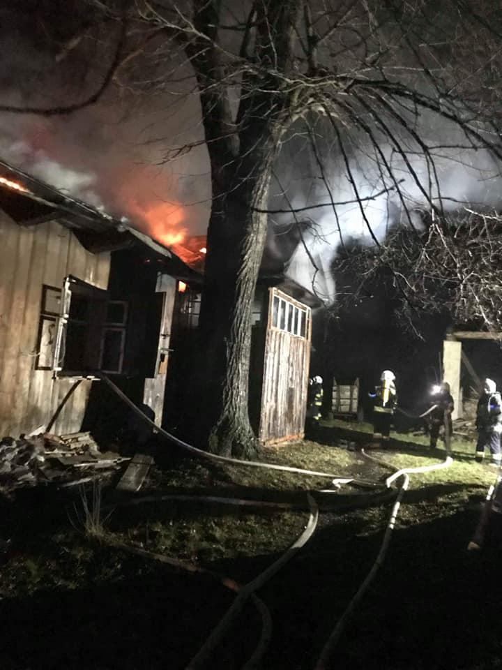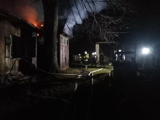 Pożar w Kobylance. Jedna osoba została wyniesiona z płonącego budynku [ZDJĘCIA]