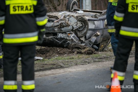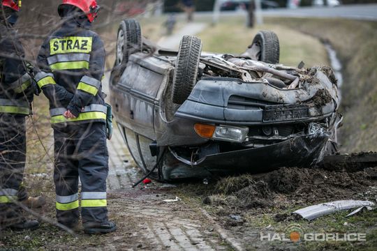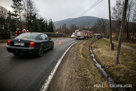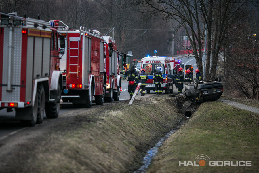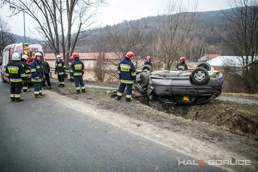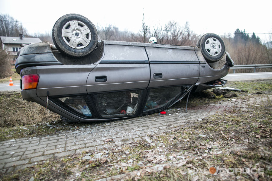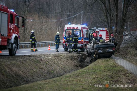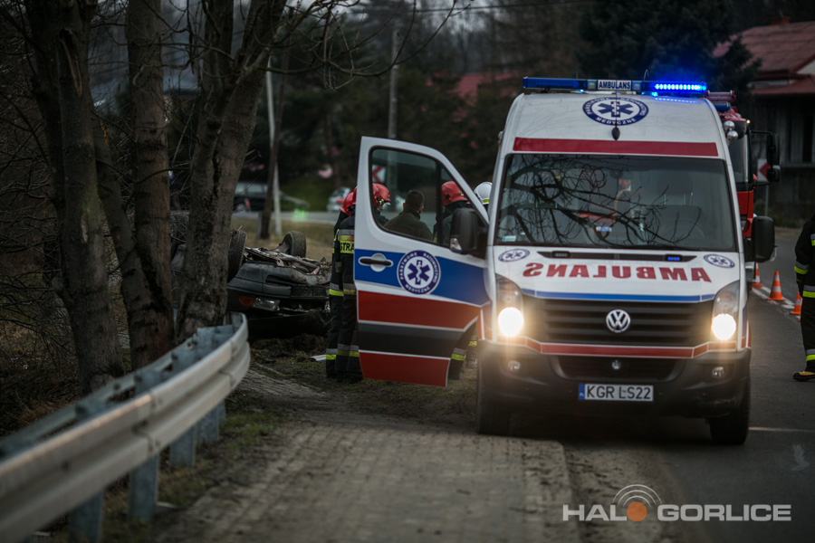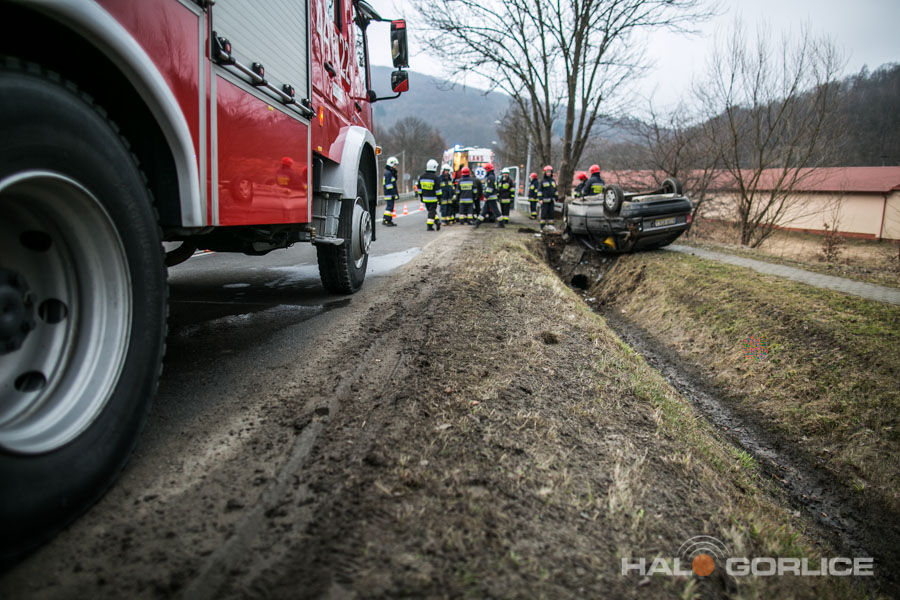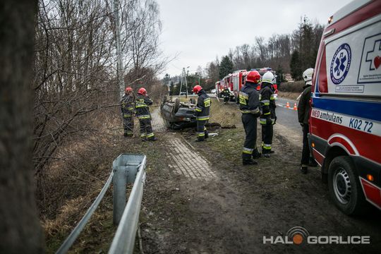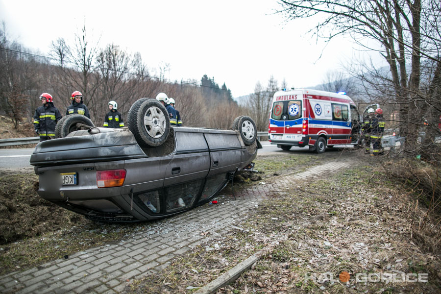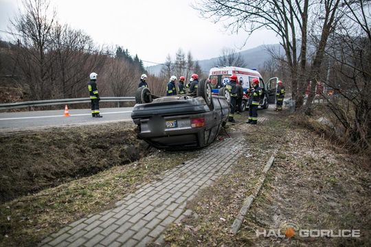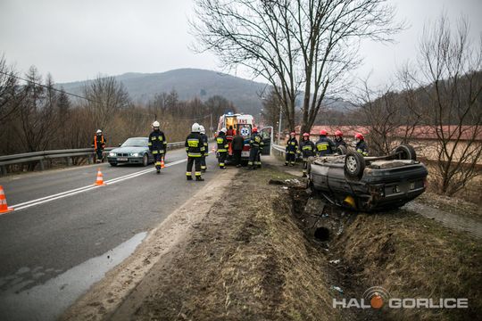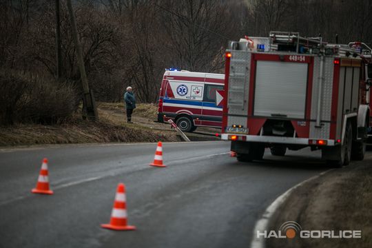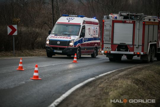 Ropica Górna: opel uderzył w betonowy przepust, dwie osoby ranne