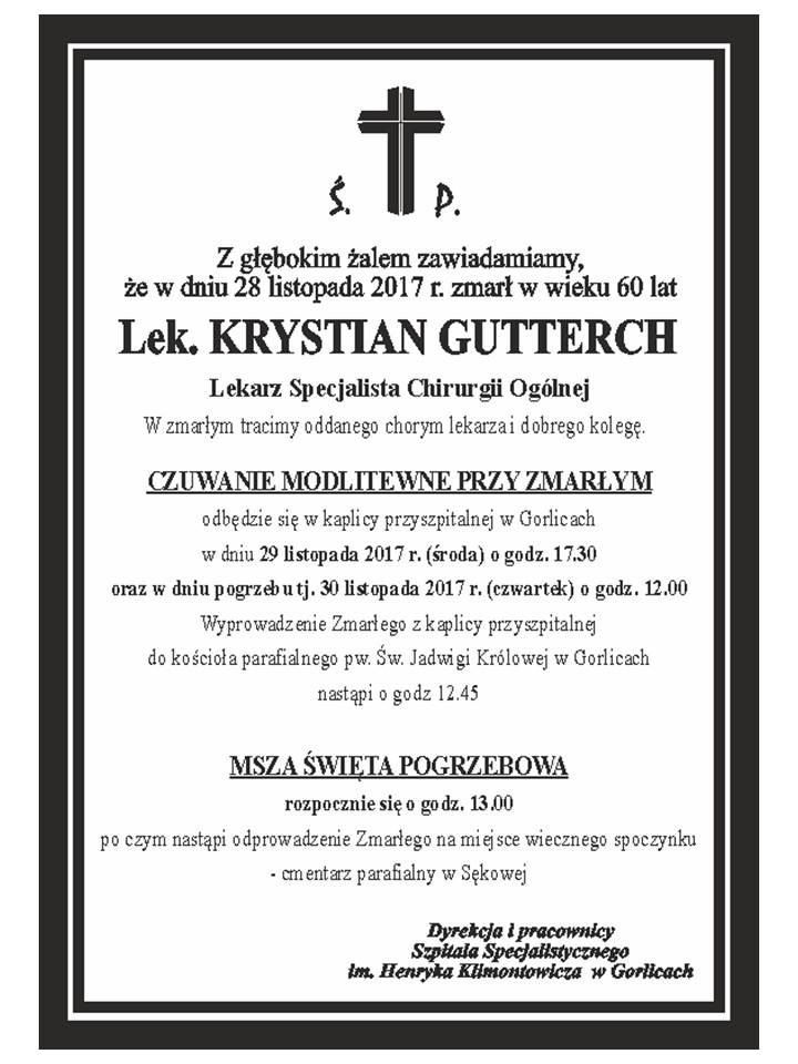 Zmarł śp. Krystian Gutterch, gorlicki chirurg