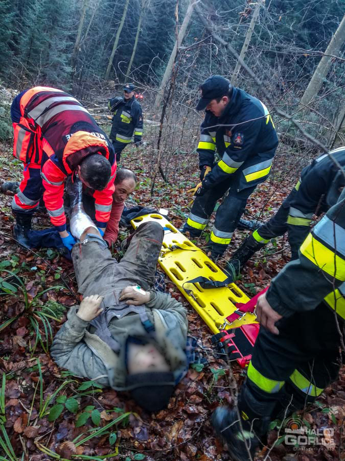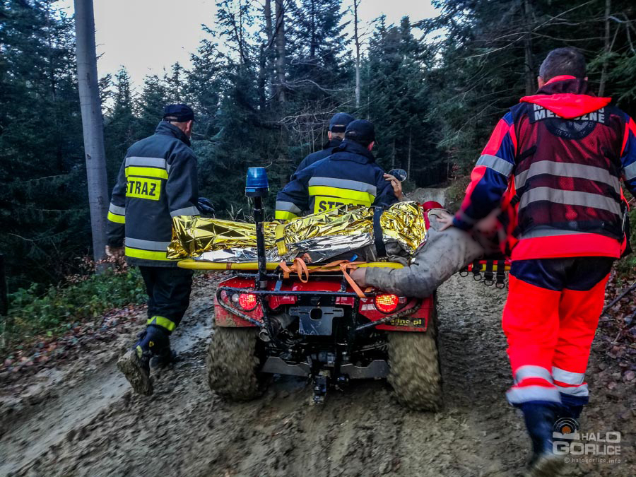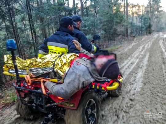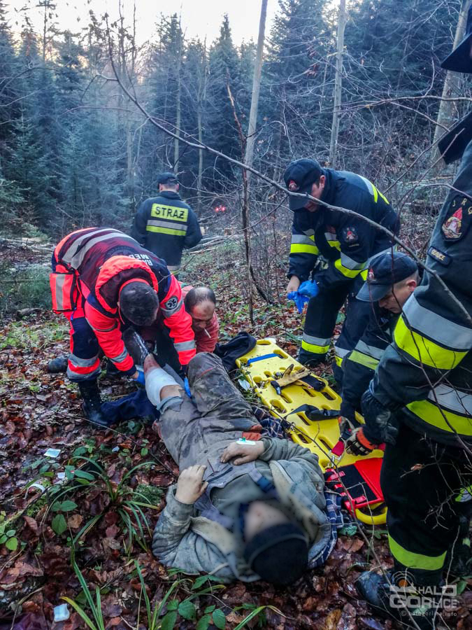 Z ratunkiem przez las do przygniecionego mężczyzny