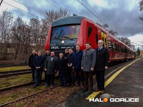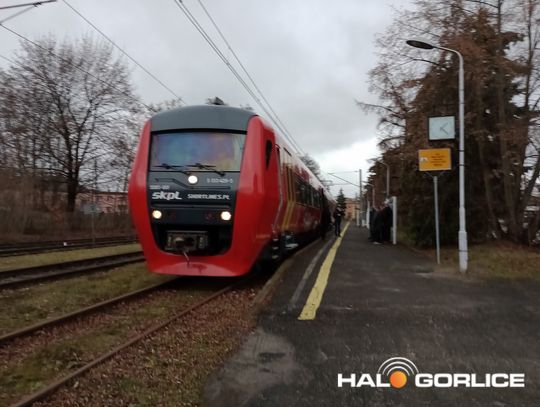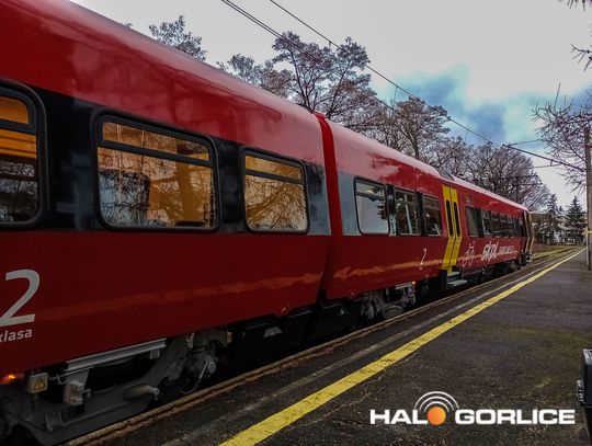 Pociąg SKPL na gorlickim dworcu PKP (16 stycznia 2023)