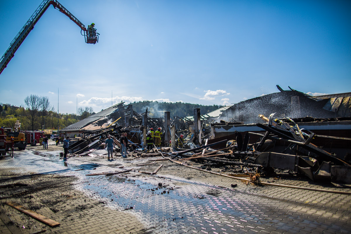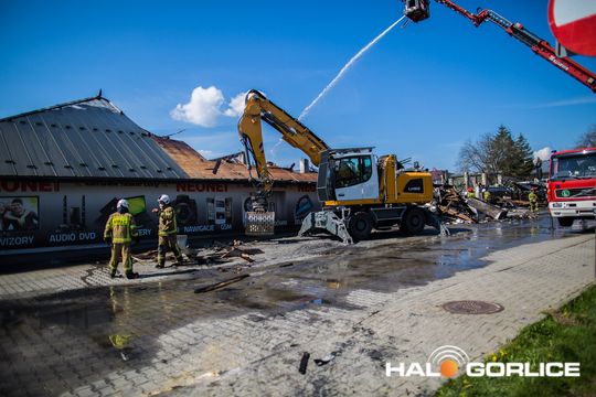 Z budynku marketu ze sprzętem RTV i AGD pozostało niewiele (22 kwietnia 2023)