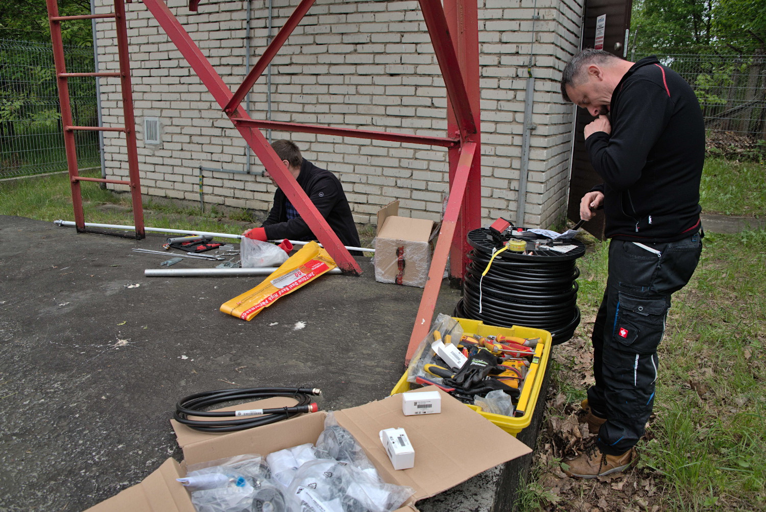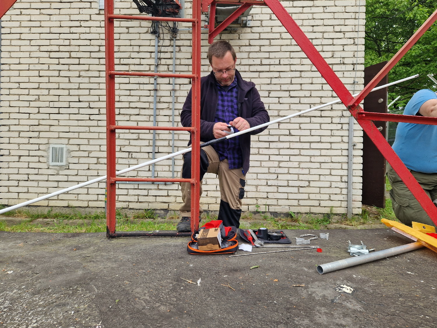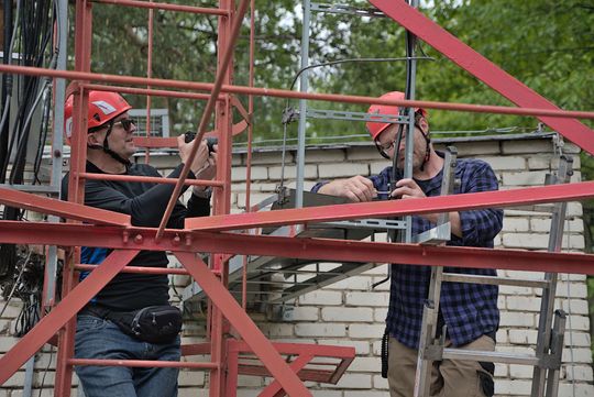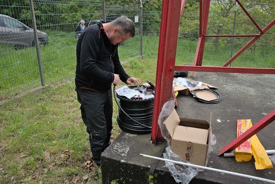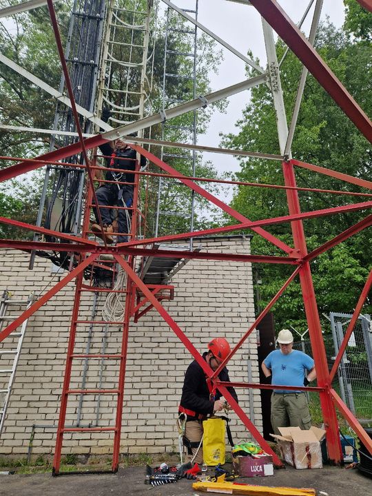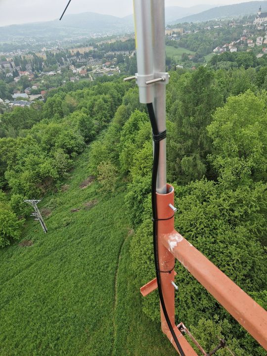 Montaż anteny do przemiennika na Górze Cmentarnej (29 maja 2023)