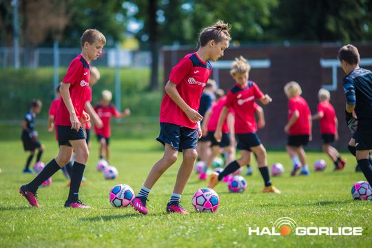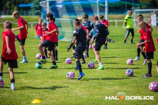 Trening młodych piłkarzy podczas zgrupowania sportowego w Go...