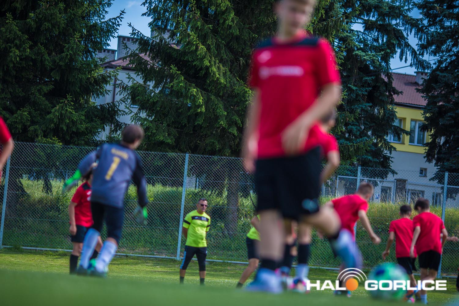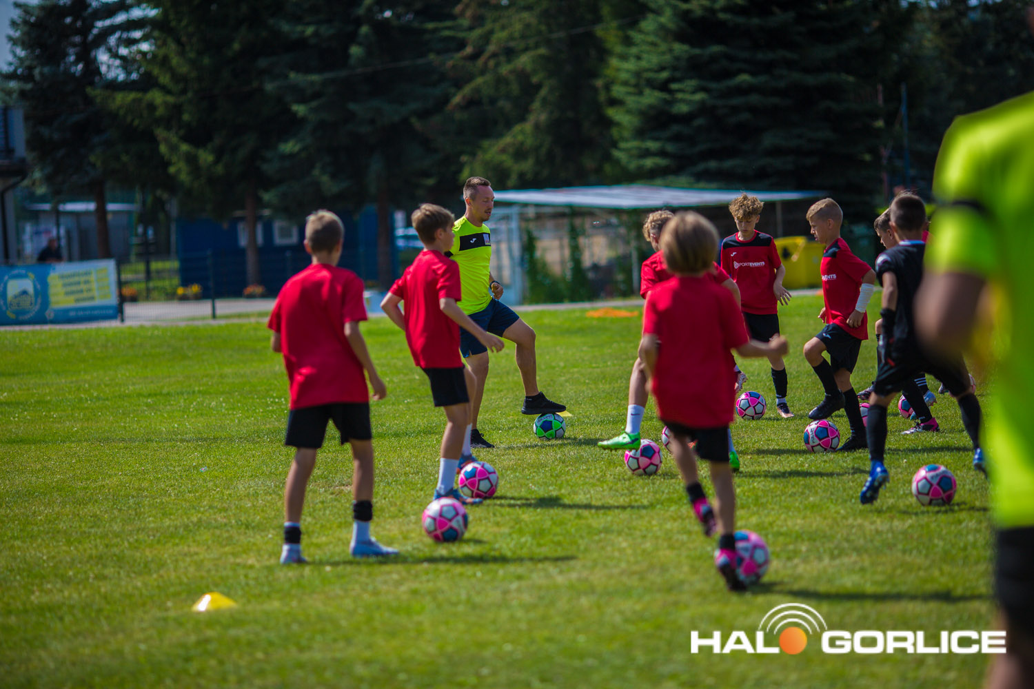 Trening młodych piłkarzy podczas zgrupowania sportowego w Gorlicach (20 lipca 2023)