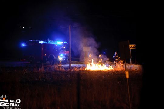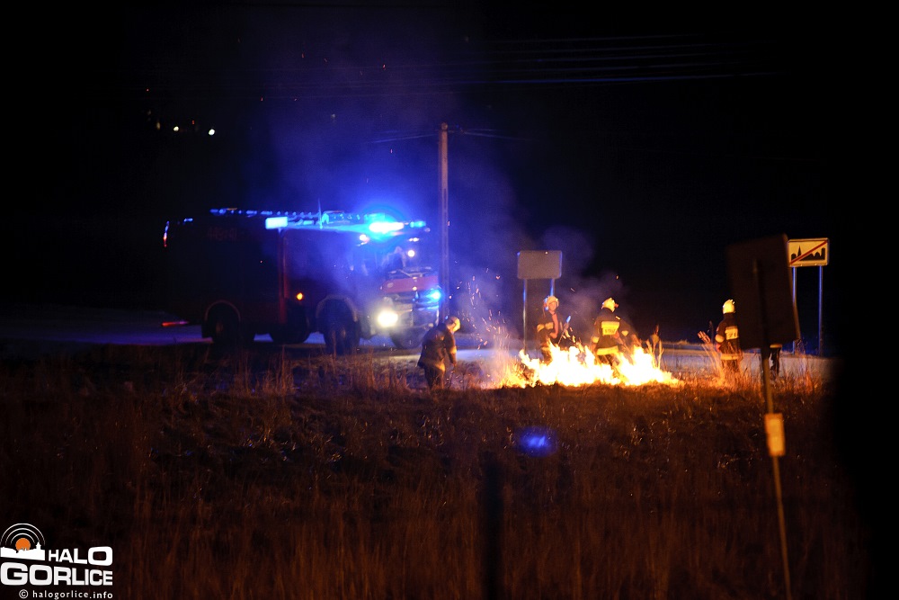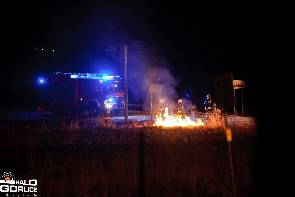 Gaszenie płonącej trawy w Dominikowicach