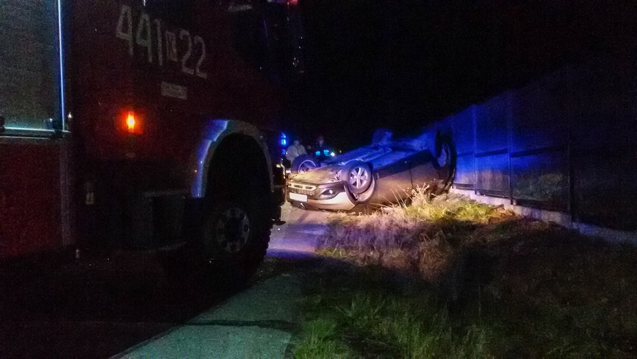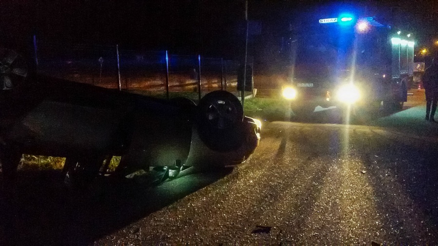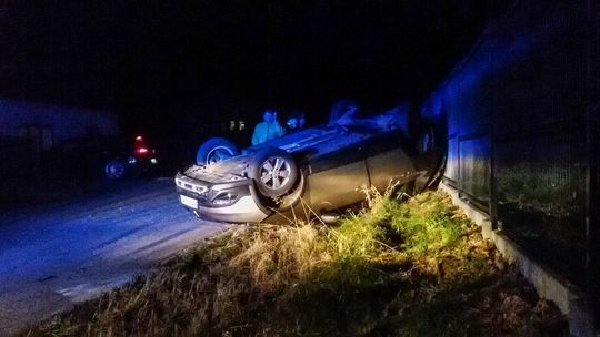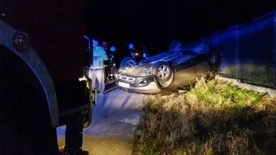 Dominikowice. Zdarzenie drogowe. Pojazd osobowy dachował.