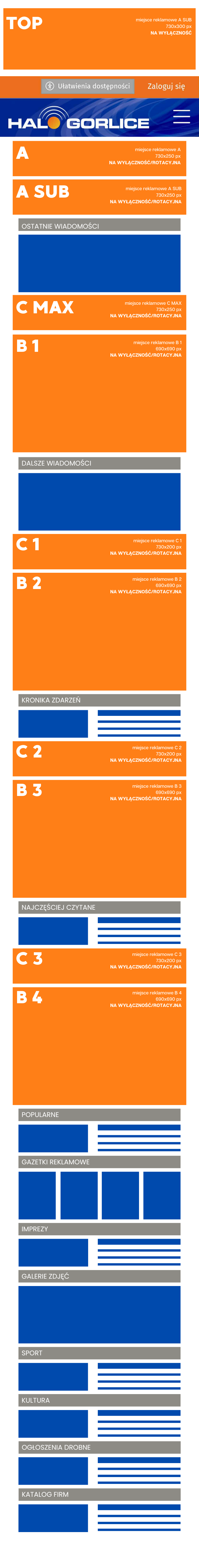 Podgląd miejsc reklamowych w wersji mobilnej na portalu halogorlice.info