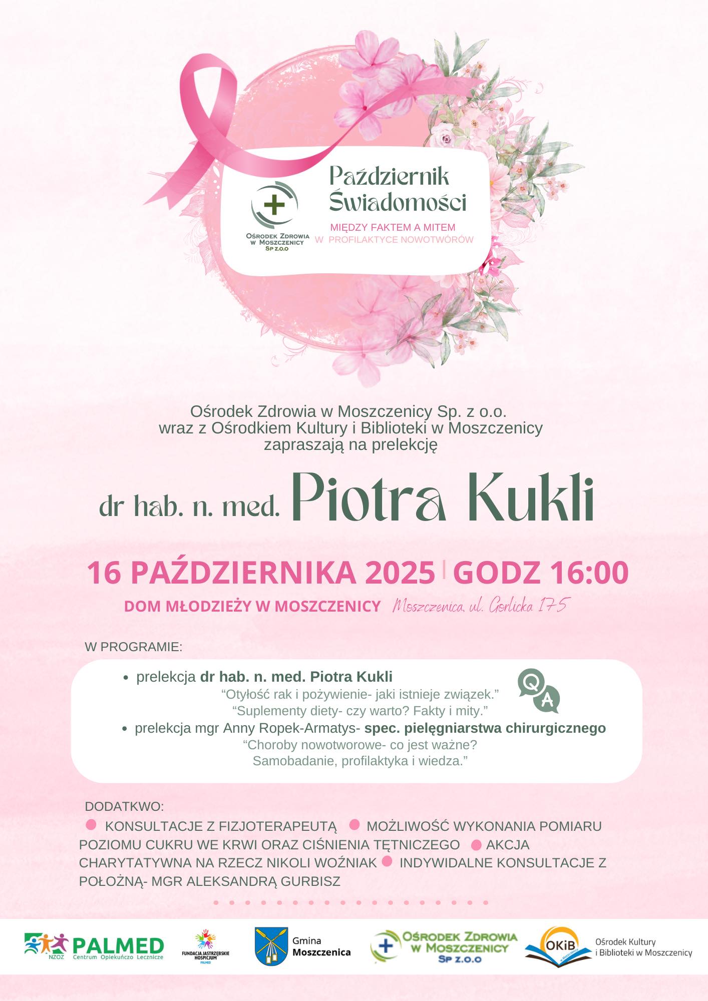 Ośrodek Zdrowia w Moszczenicy Serdecznie zaprasza wszystkich na wyjątkowe wydarzenie poświęcone profilaktyce zdrowotnej, organizowane w ramach Października Świadomości.